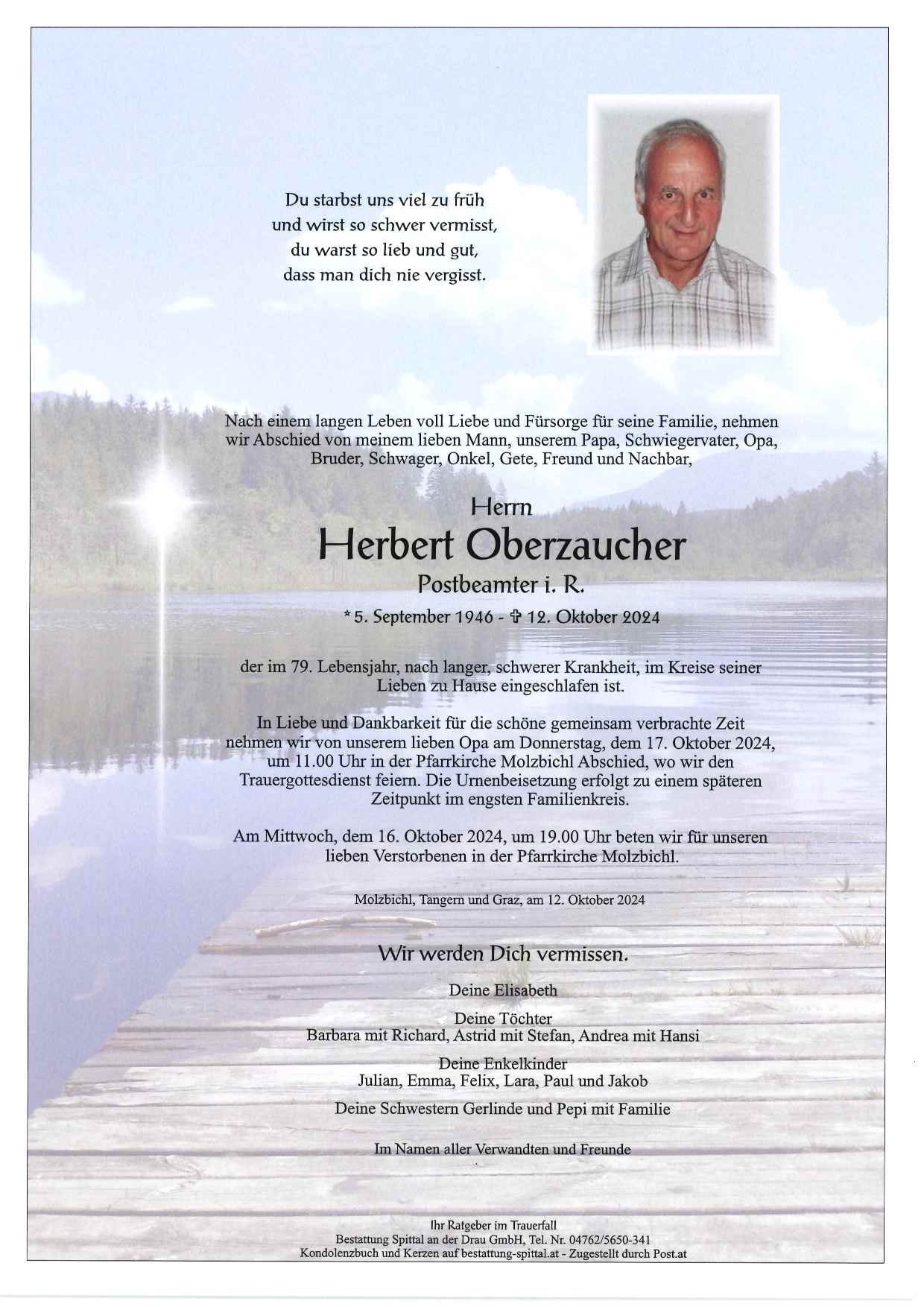Die Nachricht über den Tod von Herbert hat uns sehr betroffen gemacht. Nichts ist schwieriger, als einen geliebten Menschen für immer gehen zu lassen.