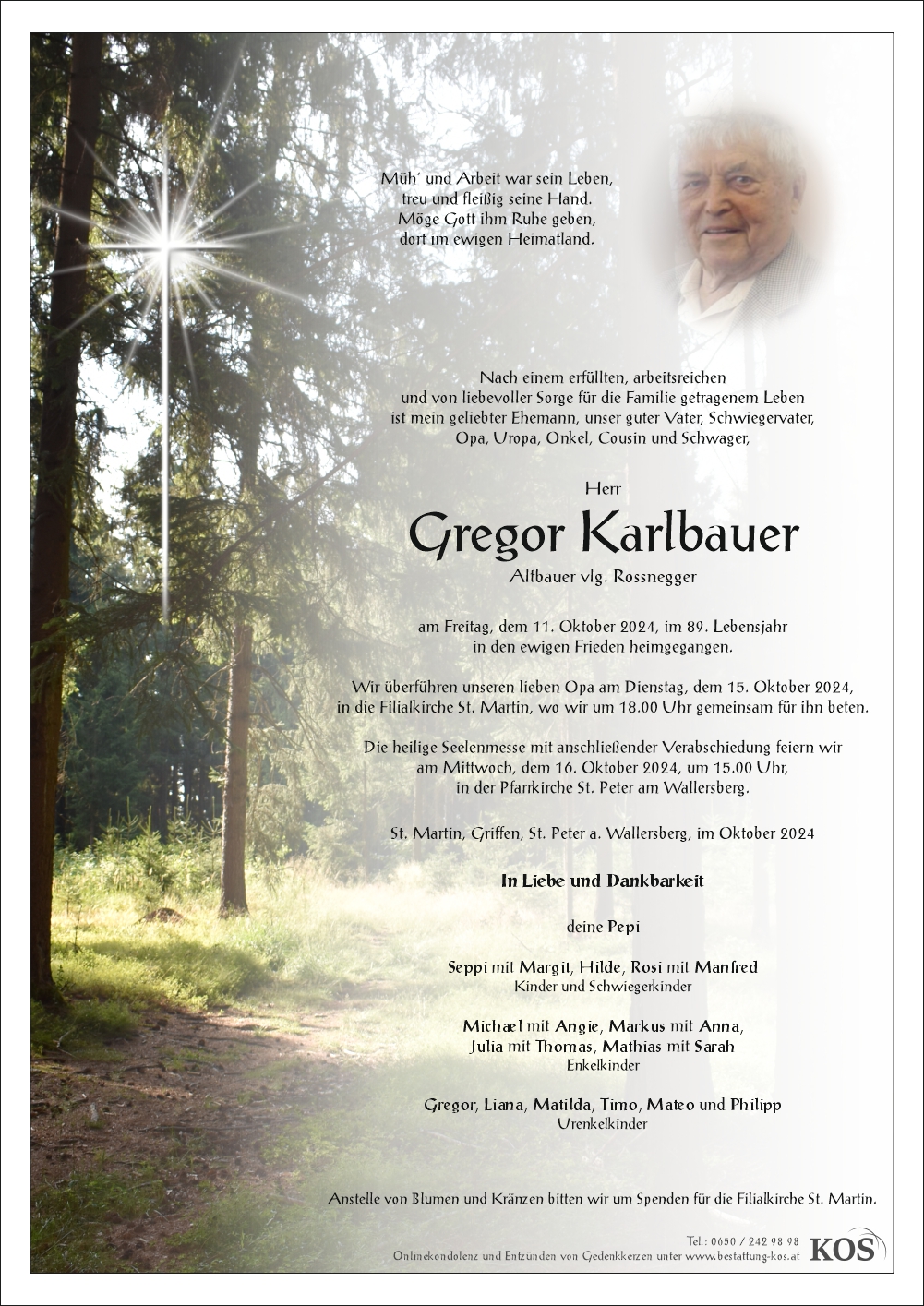 Friedhof St Peter am Wallersberg, † 11.10.2024 (88 Jahre)