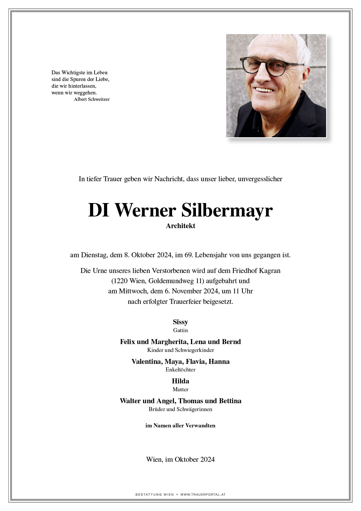 Bestattung wurde durchgeführt von: Bestattung Wien Bestattung Wien GmbH Simmeringer Hauptstraße 339 1110 - Wien (Simmering) Tel.: 01 501950 zum Bestatter