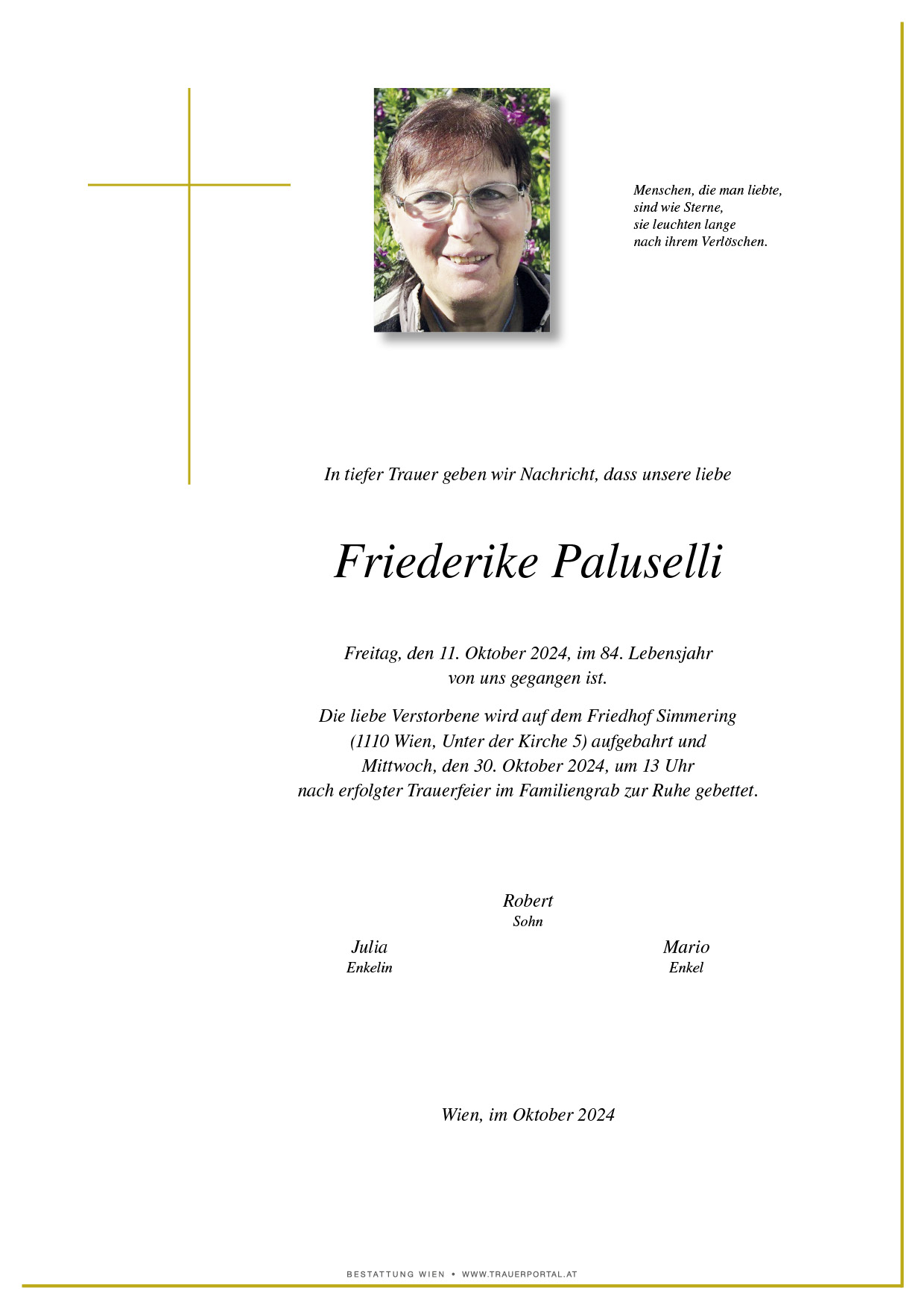 Bestattung wurde durchgeführt von: Bestattung Wien Bestattung Wien GmbH Simmeringer Hauptstraße 339 1110 - Wien (Simmering) Tel.: 01 501950 zum Bestatter