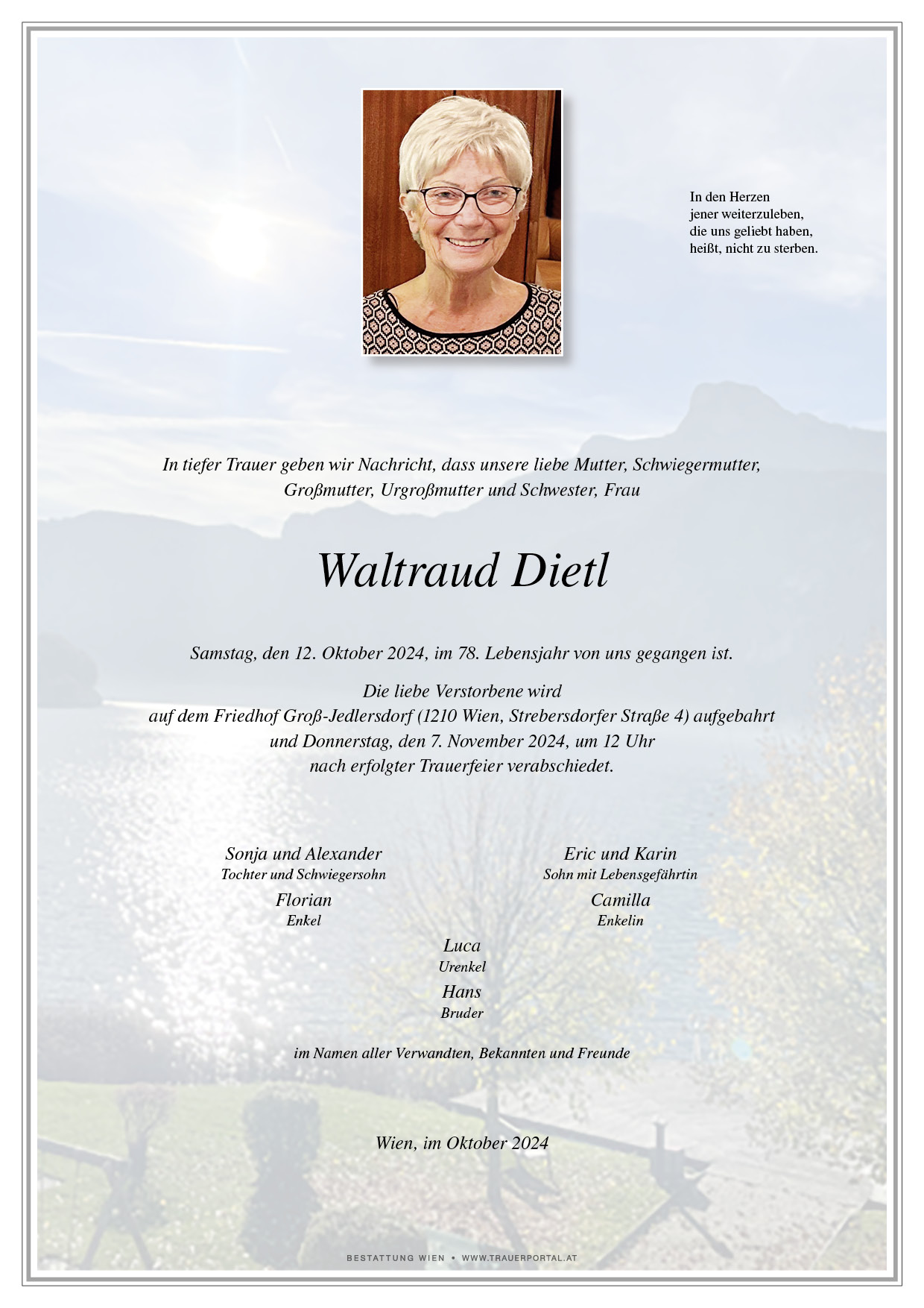 Bestattung wurde durchgeführt von: Bestattung Wien Bestattung Wien GmbH Simmeringer Hauptstraße 339 1110 - Wien (Simmering) Tel.: 01 501950 zum Bestatter