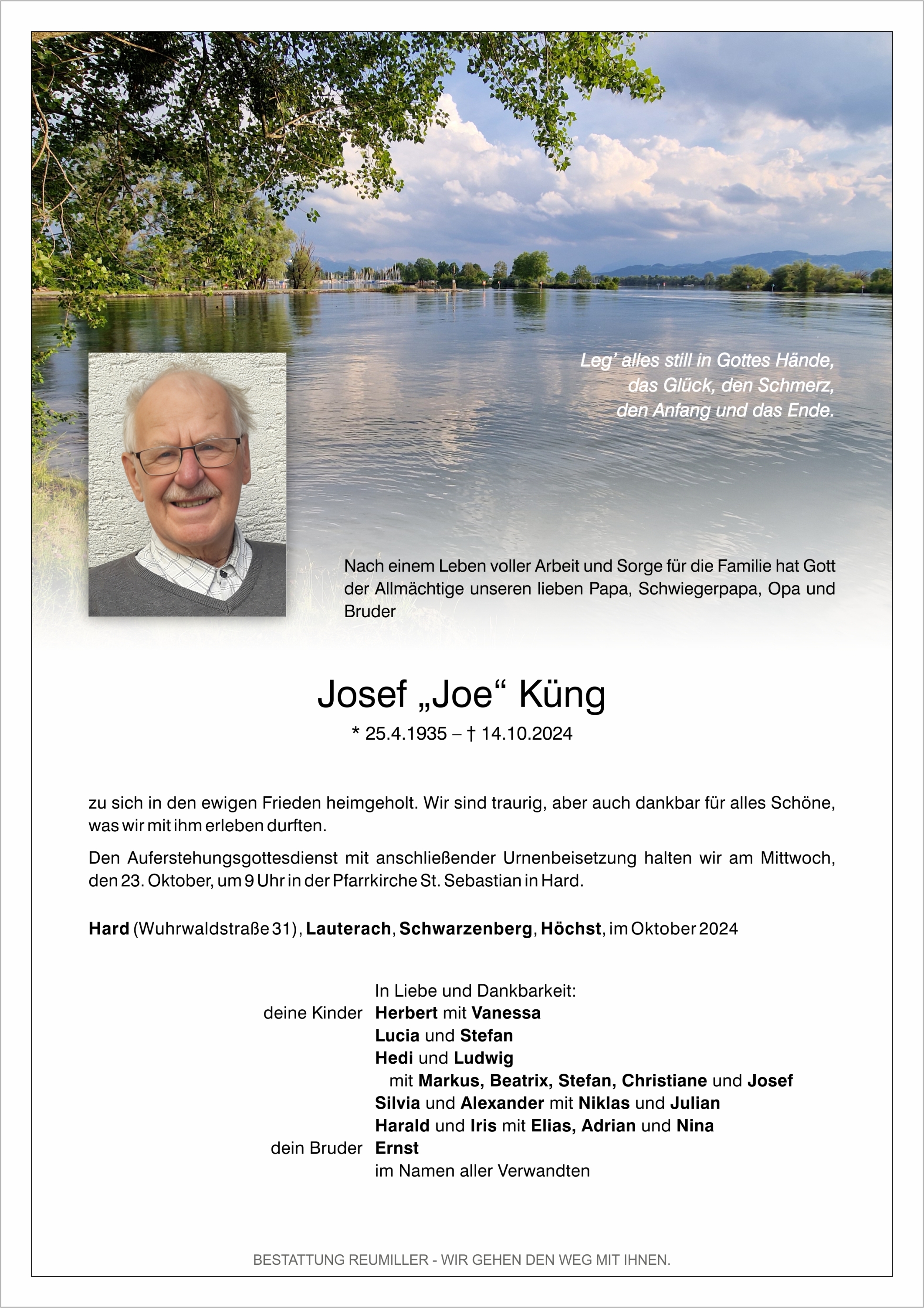 Bestattung wurde durchgeführt von: Daniel Dalmonek Bestattung Reumiller GmbH Kirchstraße 16 6971 - Hard Tel.: 055 74 72 530 zum Bestatter