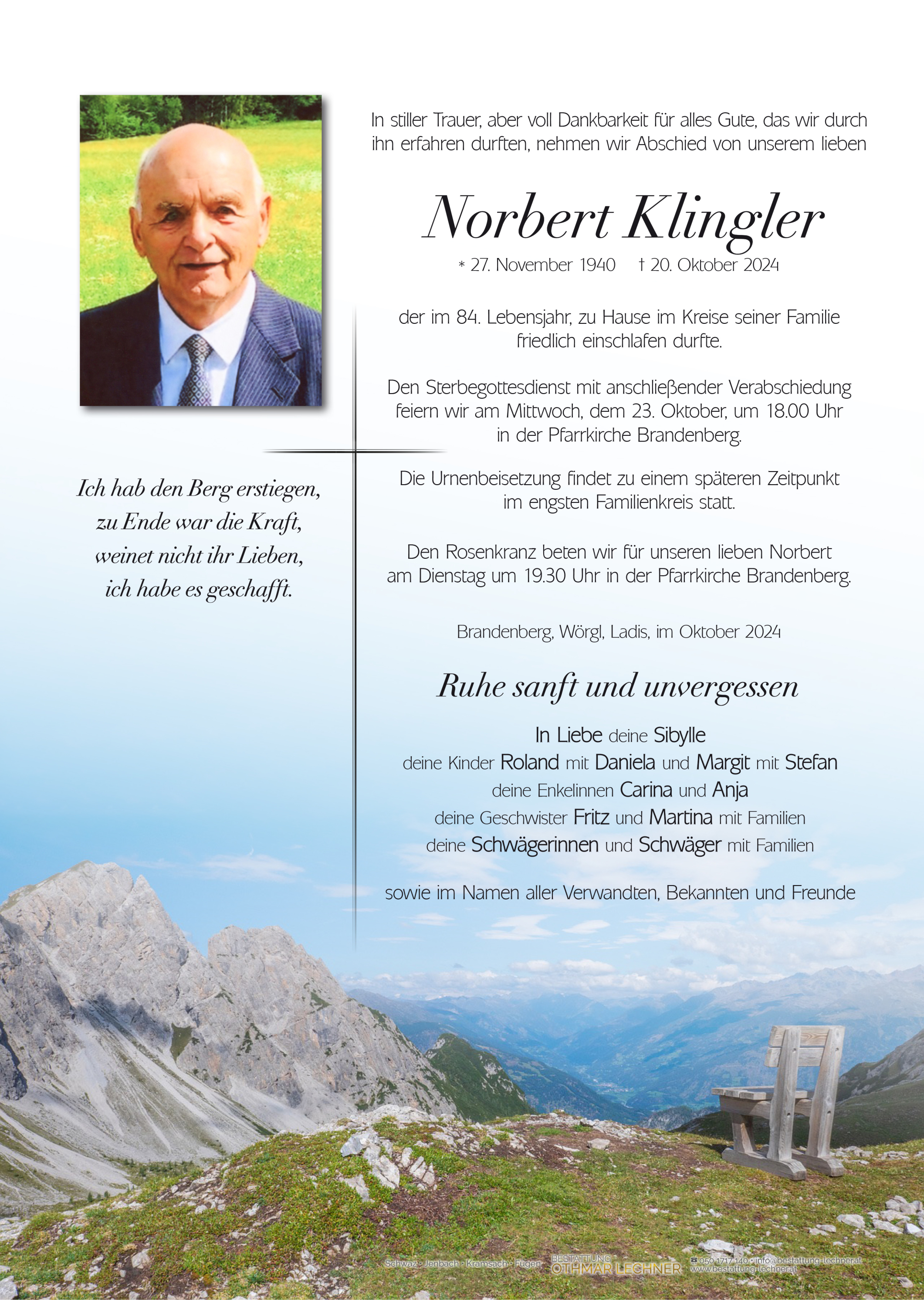 Friedhof Brandenberg, † 20.10.2024 (83 Jahre)