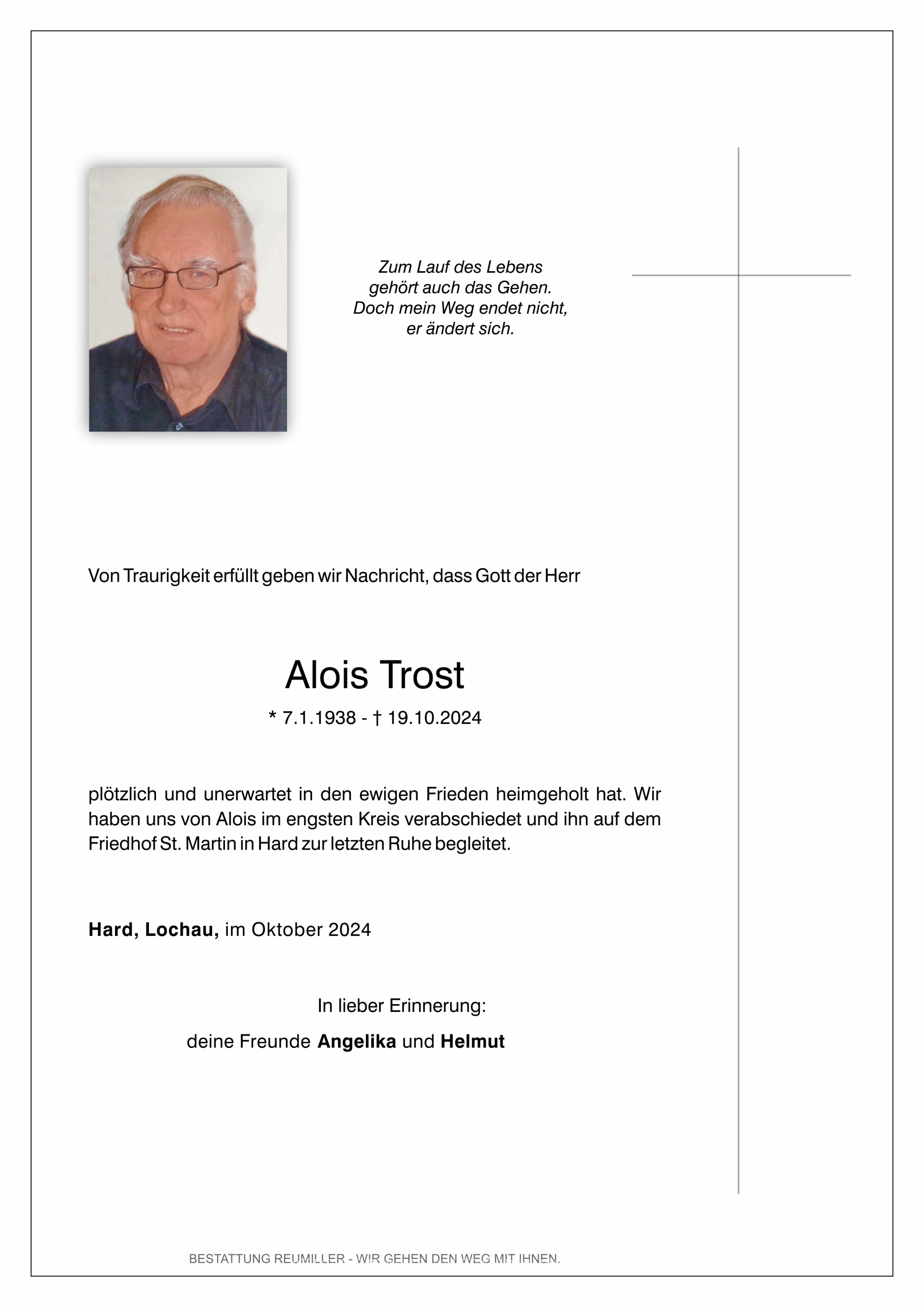 Bestattung wurde durchgeführt von: Daniel Dalmonek Bestattung Reumiller GmbH Kirchstraße 16 6971 - Hard Tel.: 055 74 72 530 zum Bestatter