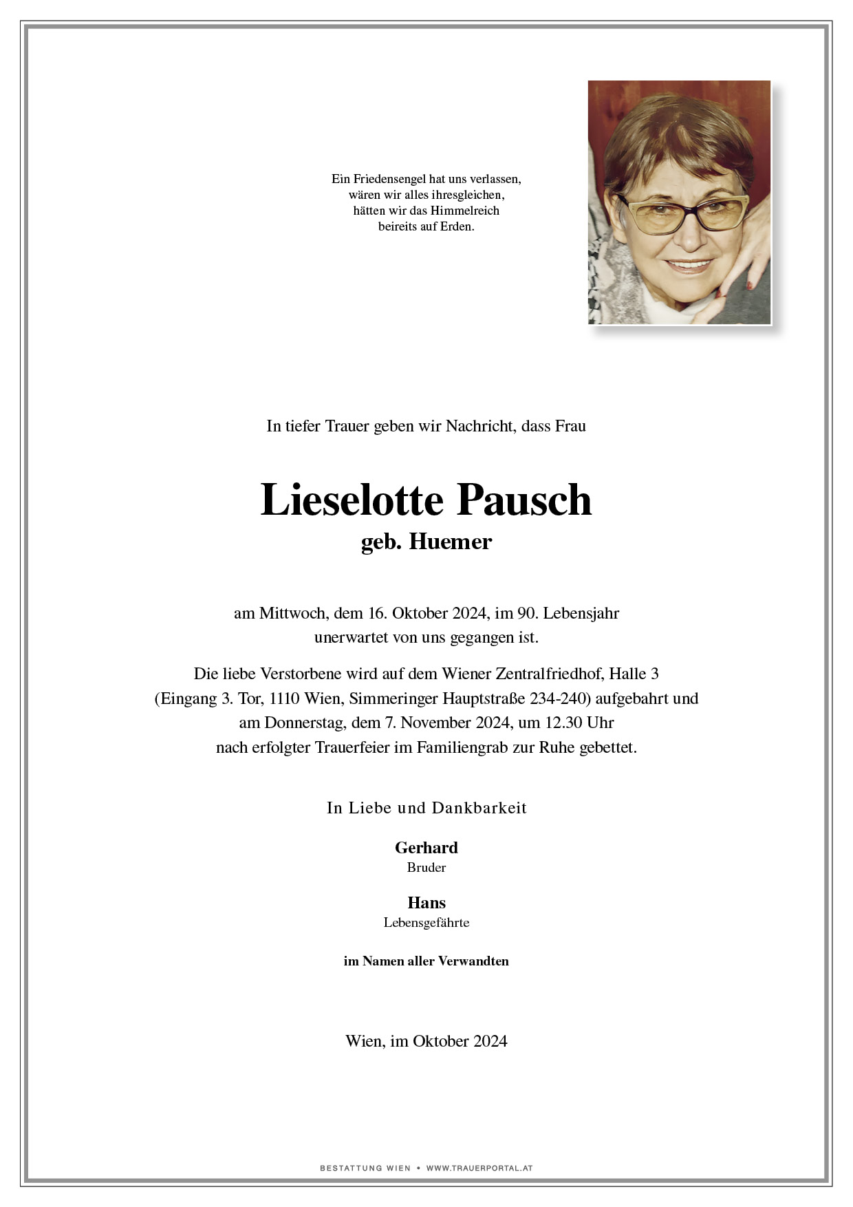 Bestattung wurde durchgeführt von: Bestattung Wien Bestattung Wien GmbH Simmeringer Hauptstraße 339 1110 - Wien (Simmering) Tel.: 01 501950 zum Bestatter