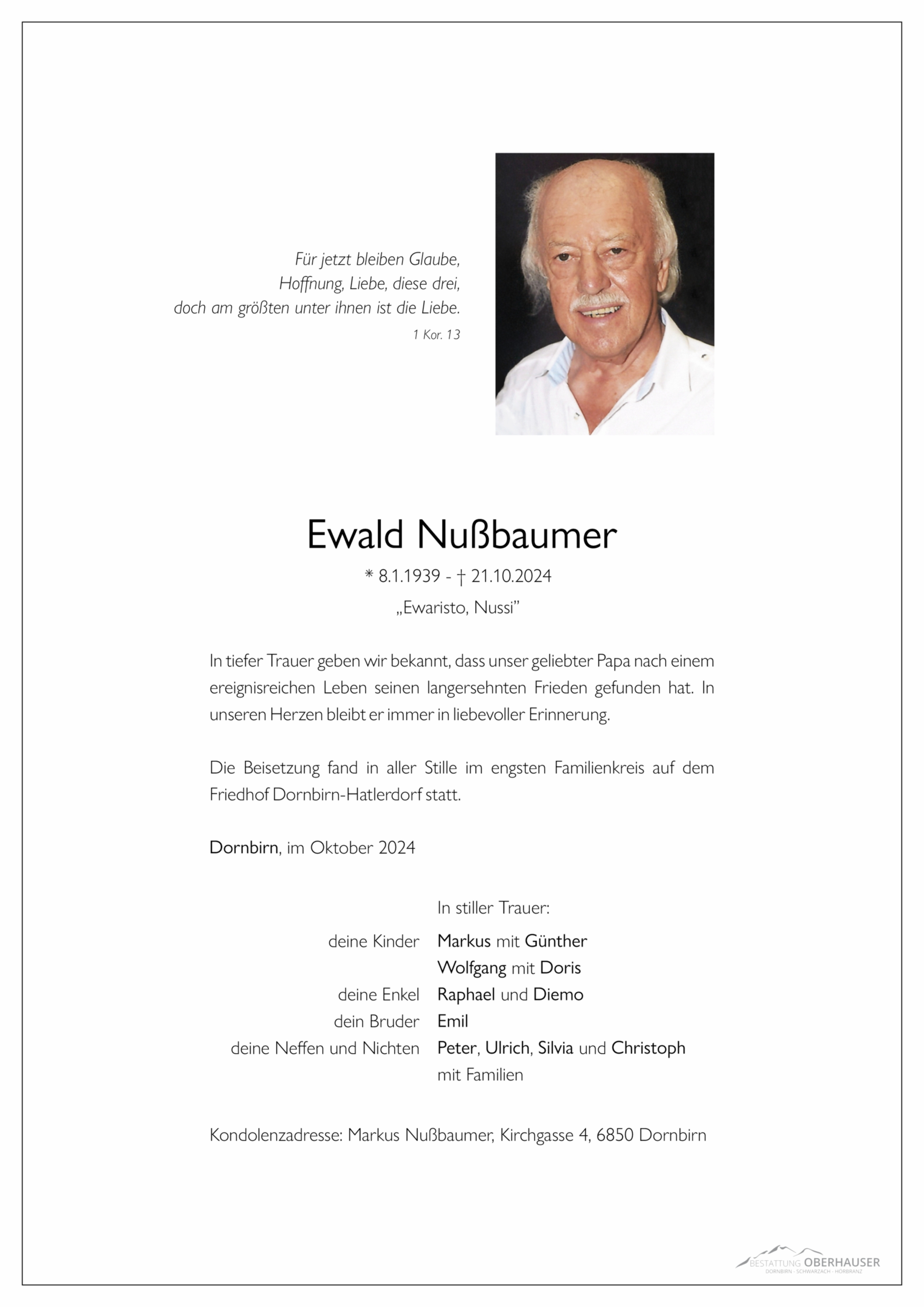 Neue Kerze für Ewald Nußbaumer entzünden.