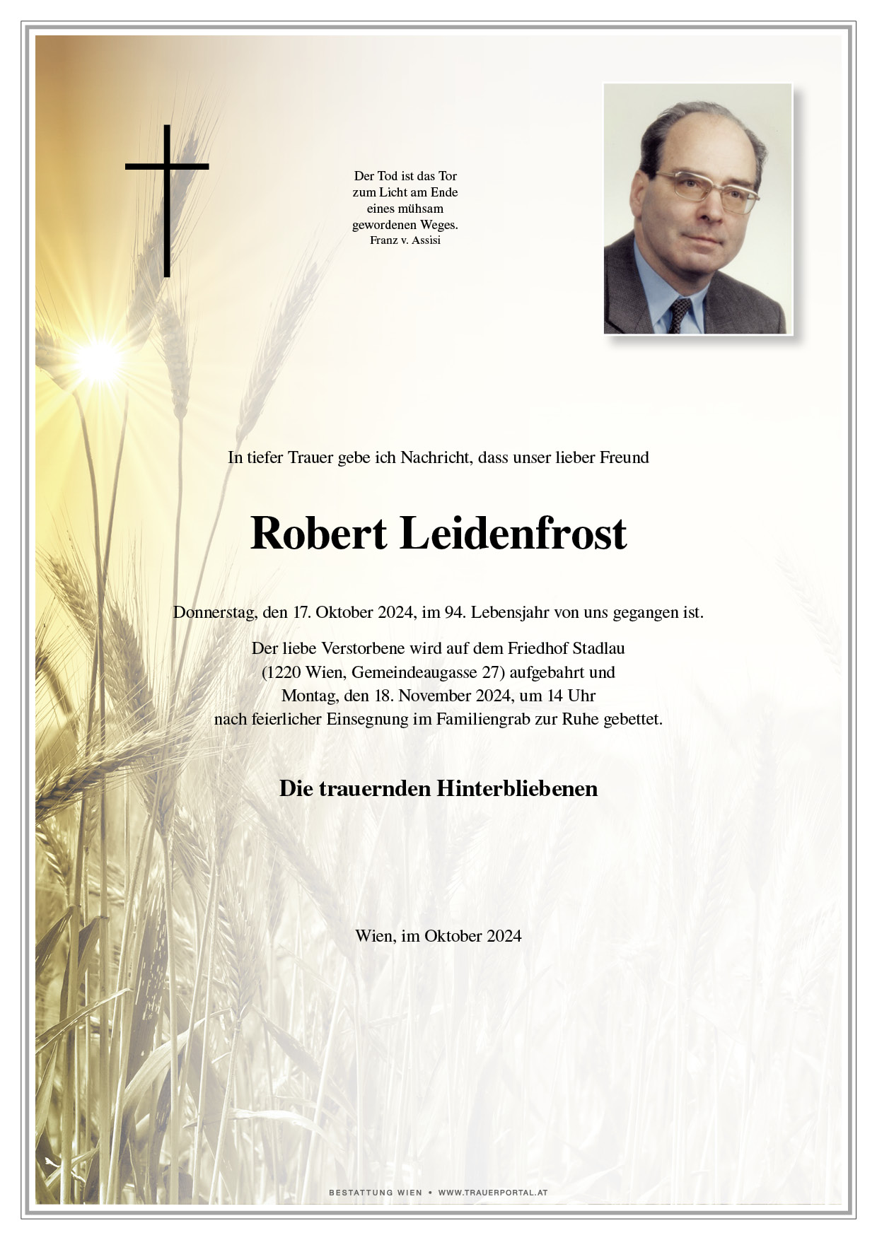 Bestattung wurde durchgeführt von: Bestattung Wien Bestattung Wien GmbH Simmeringer Hauptstraße 339 1110 - Wien (Simmering) Tel.: 01 501950 zum Bestatter