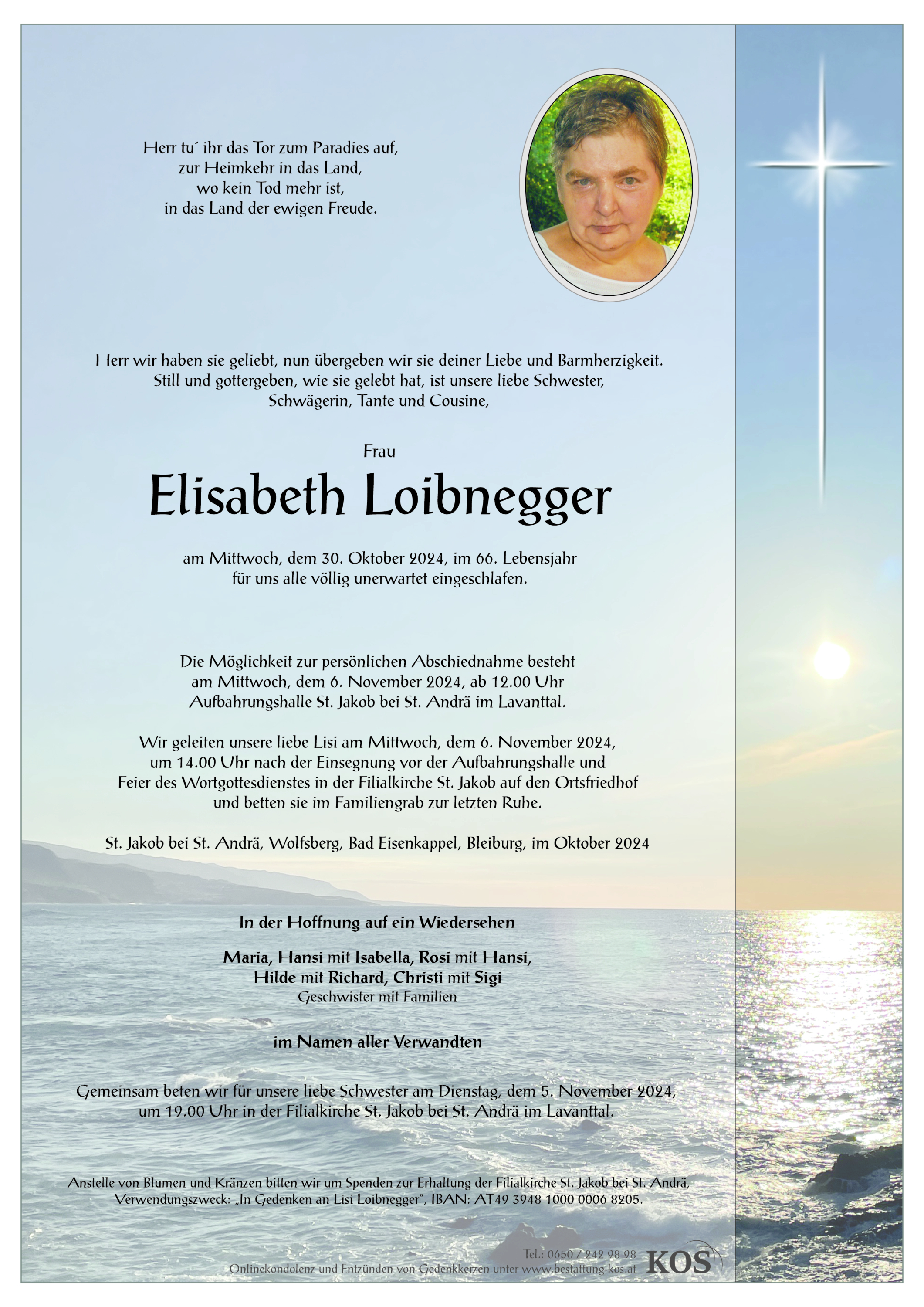 Neue Kerze für Elisabeth Loibnegger entzünden.