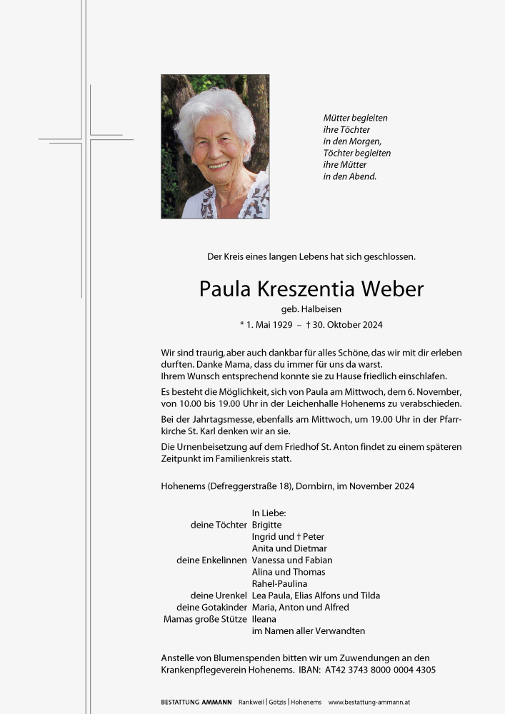 Friedhof Hohenems, Friedhof St. Anton , † 31.10.2024 (95 Jahre)