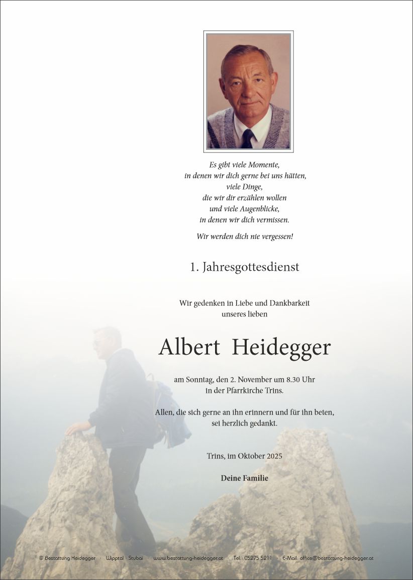 Bestattung wurde durchgeführt von: Karl Neurauter Karl Neurauter Bestattung Heidegger Brennerstraße 69 6150 - Steinach am Brenner Tel.: 05275 5211 zum Bestatter