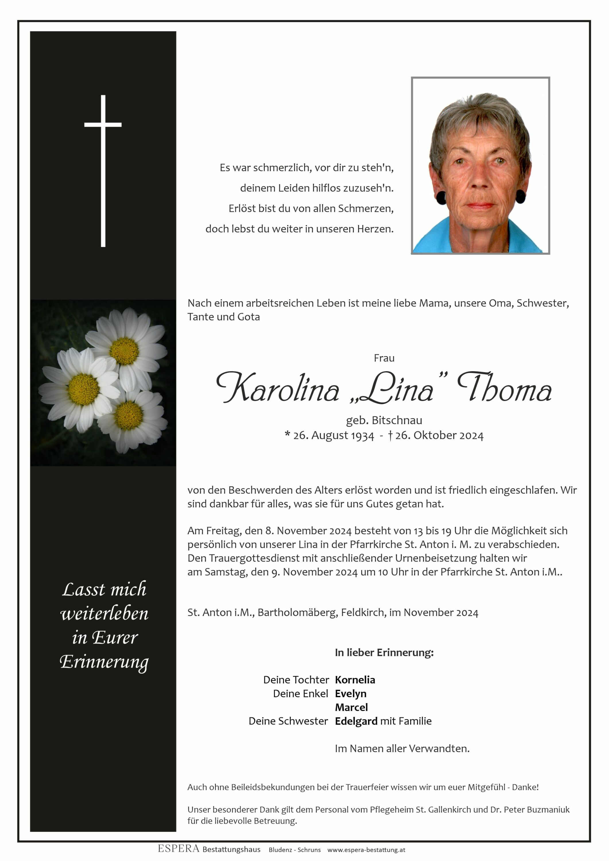 Bestattung wurde durchgeführt von: Espera Bestattungshaus Espera Sturnengasse 26 6700 - Bludenz Tel.: +43 5552 620790 zum Bestatter