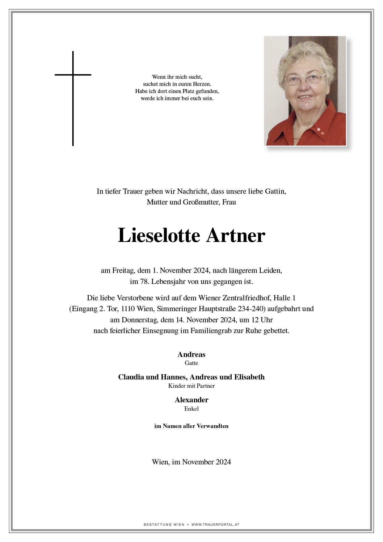 Bestattung wurde durchgeführt von: Bestattung Wien Bestattung Wien GmbH Simmeringer Hauptstraße 339 1110 - Wien (Simmering) Tel.: 01 501950 zum Bestatter