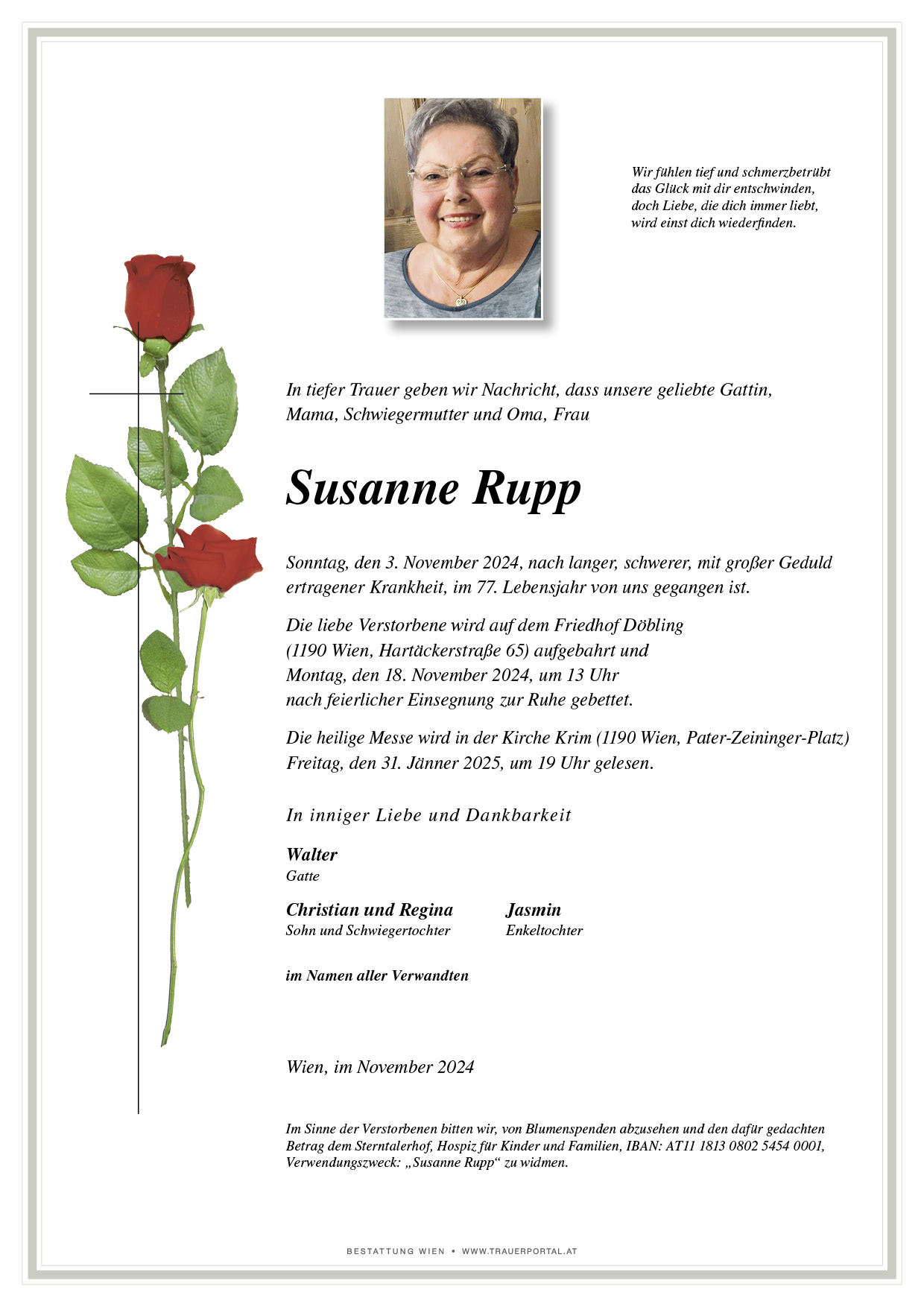 Bestattung wurde durchgeführt von: Bestattung Wien Bestattung Wien GmbH Simmeringer Hauptstraße 339 1110 - Wien (Simmering) Tel.: 01 501950 zum Bestatter