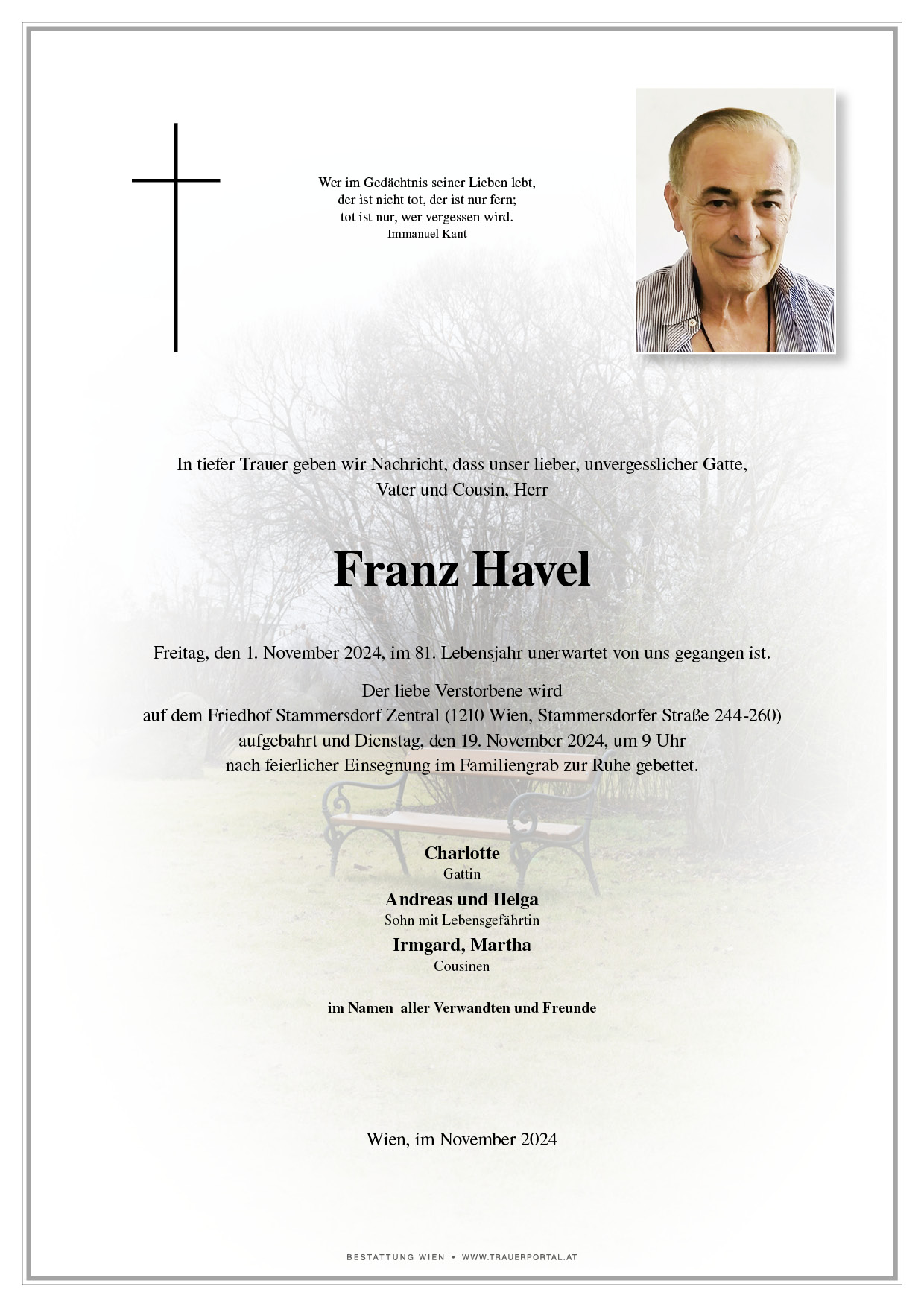 Bestattung wurde durchgeführt von: Bestattung Wien Bestattung Wien GmbH Simmeringer Hauptstraße 339 1110 - Wien (Simmering) Tel.: 01 501950 zum Bestatter