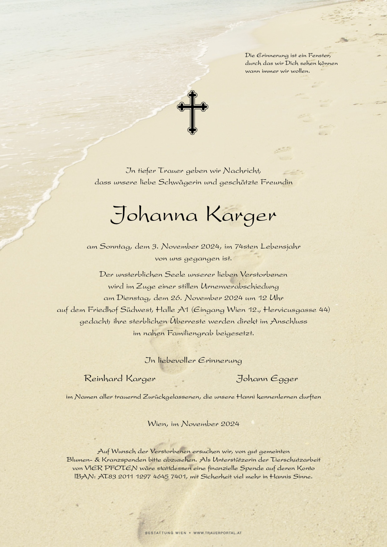 Bestattung wurde durchgeführt von: Bestattung Wien Bestattung Wien GmbH Simmeringer Hauptstraße 339 1110 - Wien (Simmering) Tel.: 01 501950 zum Bestatter