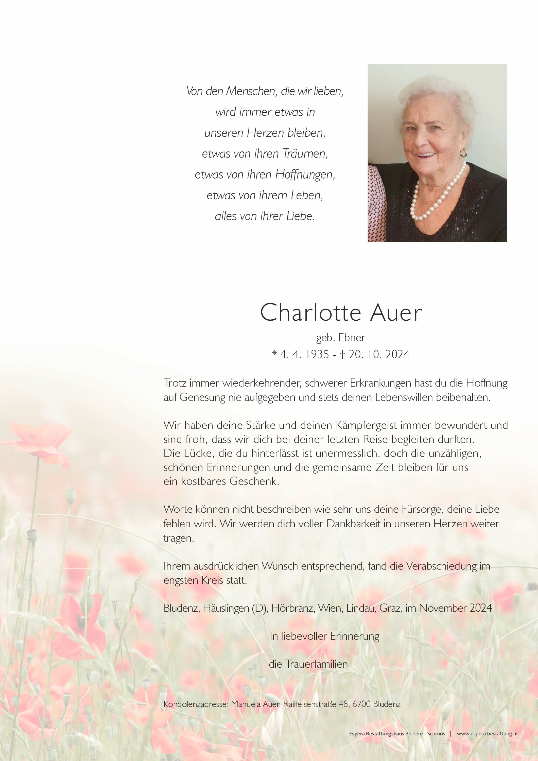 Bestattung wurde durchgeführt von: Espera Bestattungshaus Espera Sturnengasse 26 6700 - Bludenz Tel.: +43 5552 620790 zum Bestatter