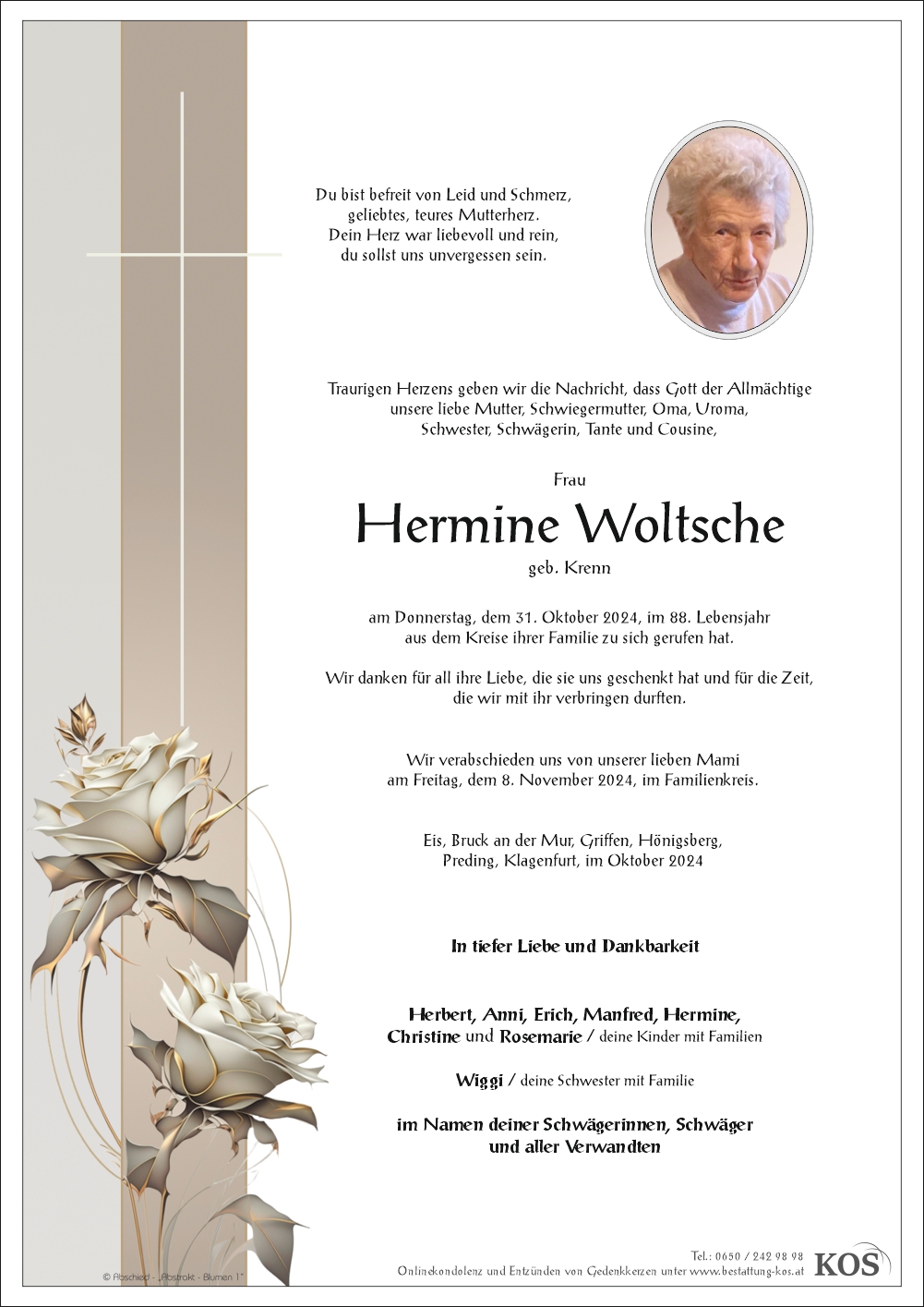 Bestattung wurde durchgeführt von: Familienbetrieb Bestattung Kos Bestattung A. & J. Kos GmbH Krankenhausstraße 2A 9400 - Wolfsberg Tel.: 0650 242 98 98 zum Bestatter