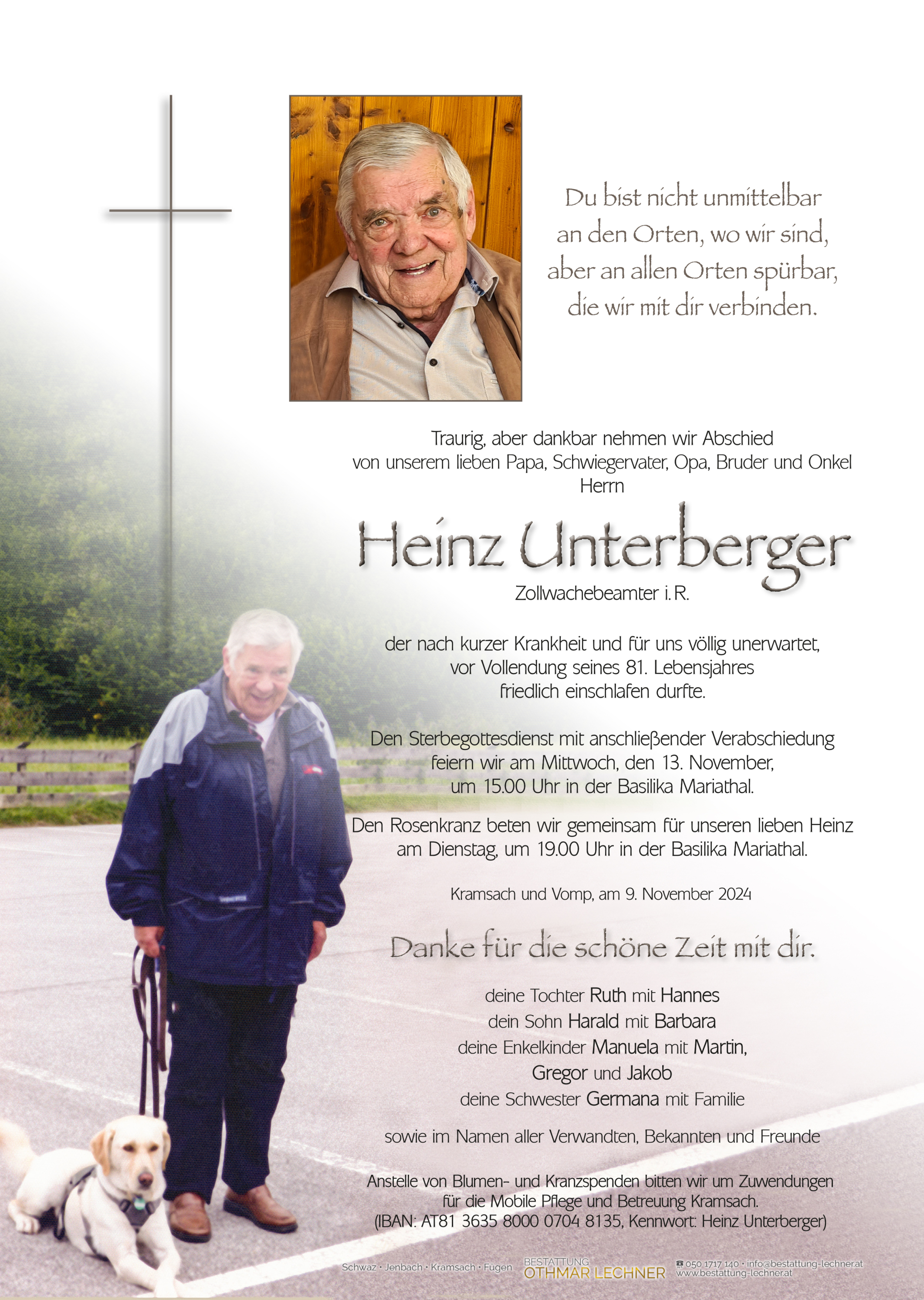 Im Namen des Krippenvereins Kramsach und Umgebung möchte ich euch anlässlich des Heimganges unseres langjährigen Mitgliedes Heinz Unterberger unser tiefstes