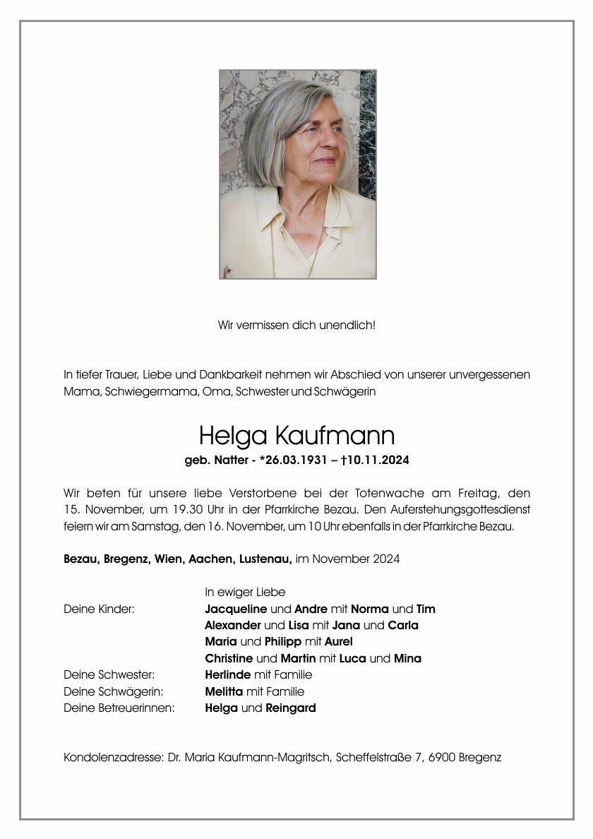 Friedhof Bezau, † 10.11.2024 (93 Jahre)