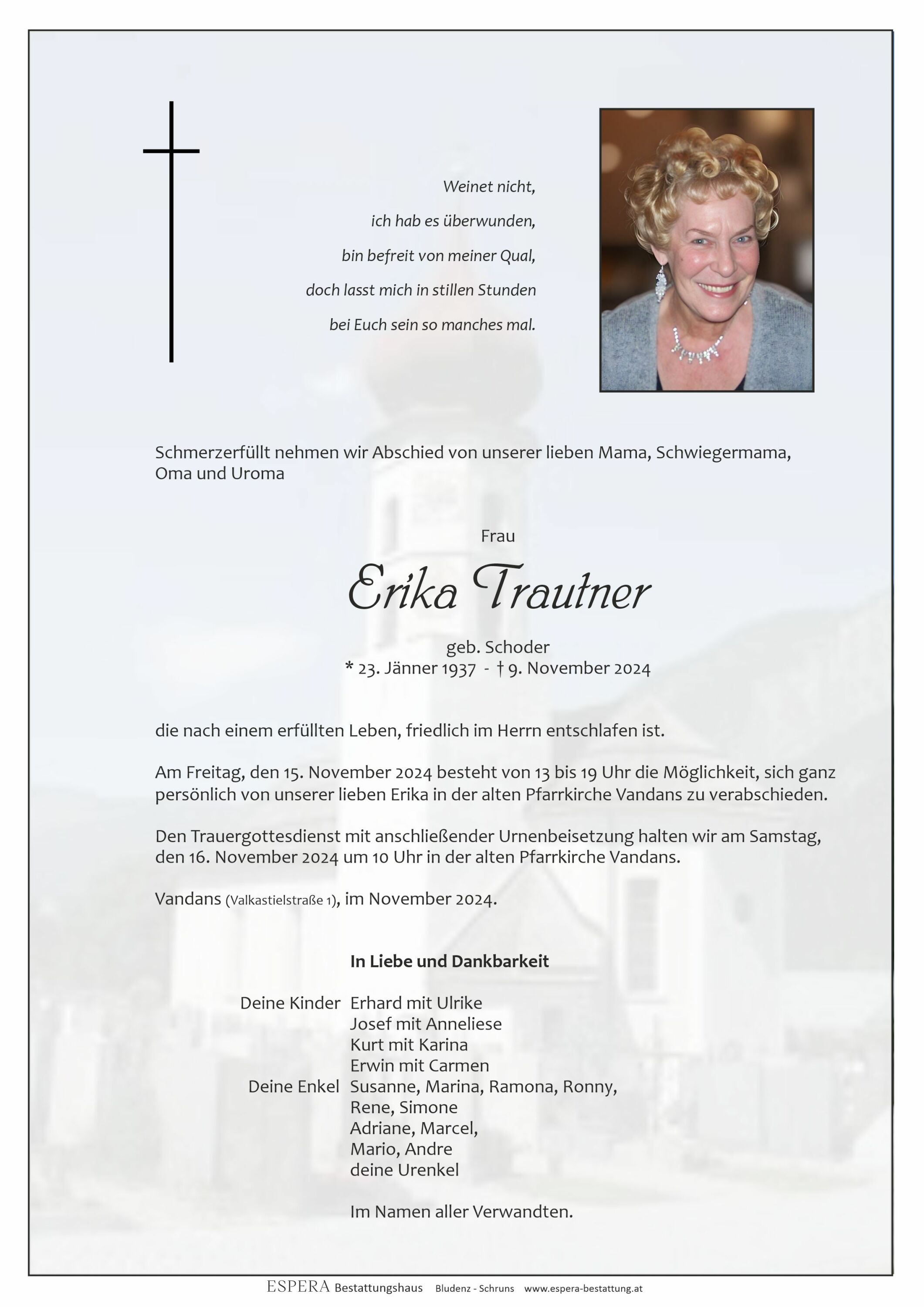 Bestattung wurde durchgeführt von: Espera Bestattungshaus Espera Sturnengasse 26 6700 - Bludenz Tel.: +43 5552 620790 zum Bestatter