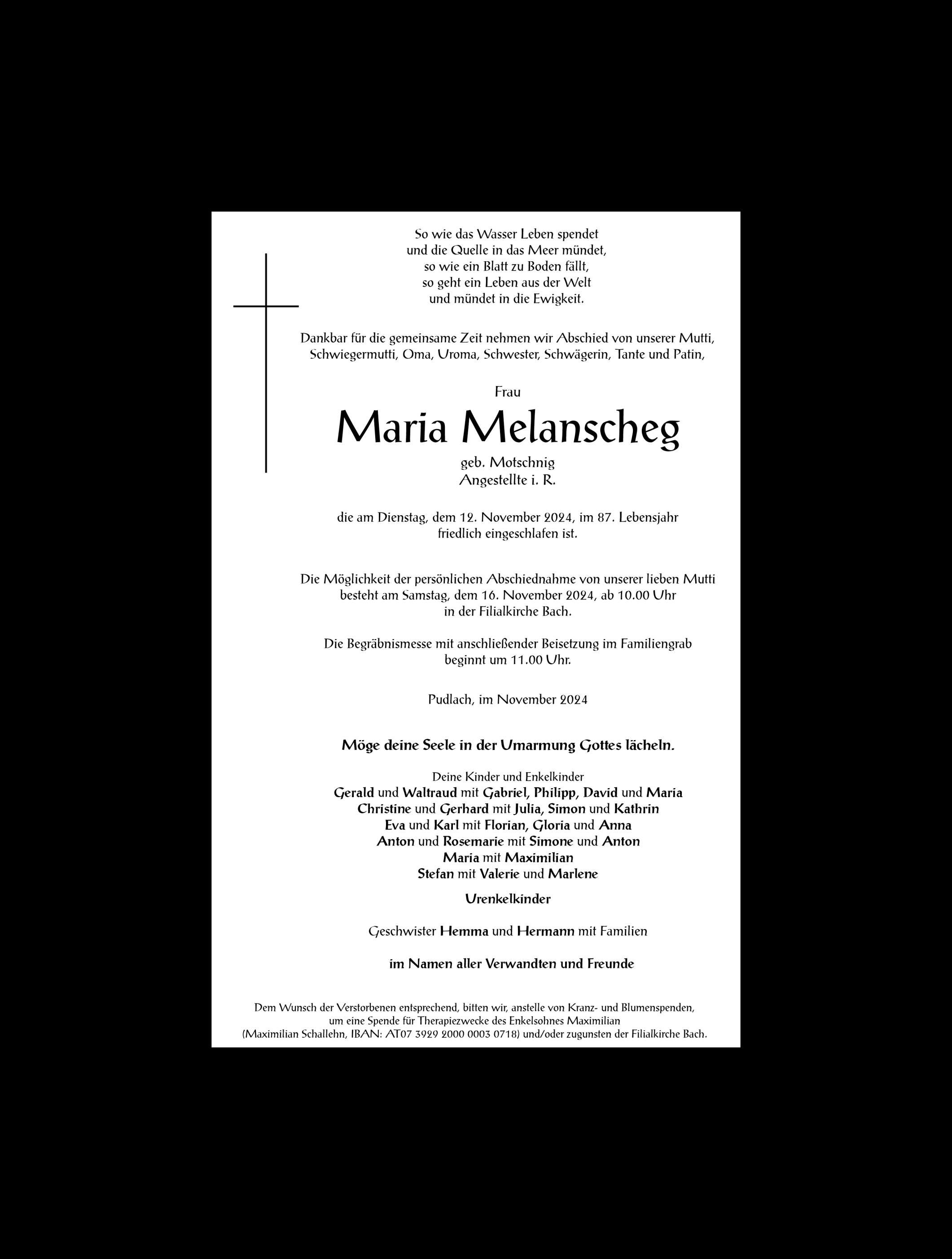 Friedhof Bach, † 12.11.2024 (86 Jahre)