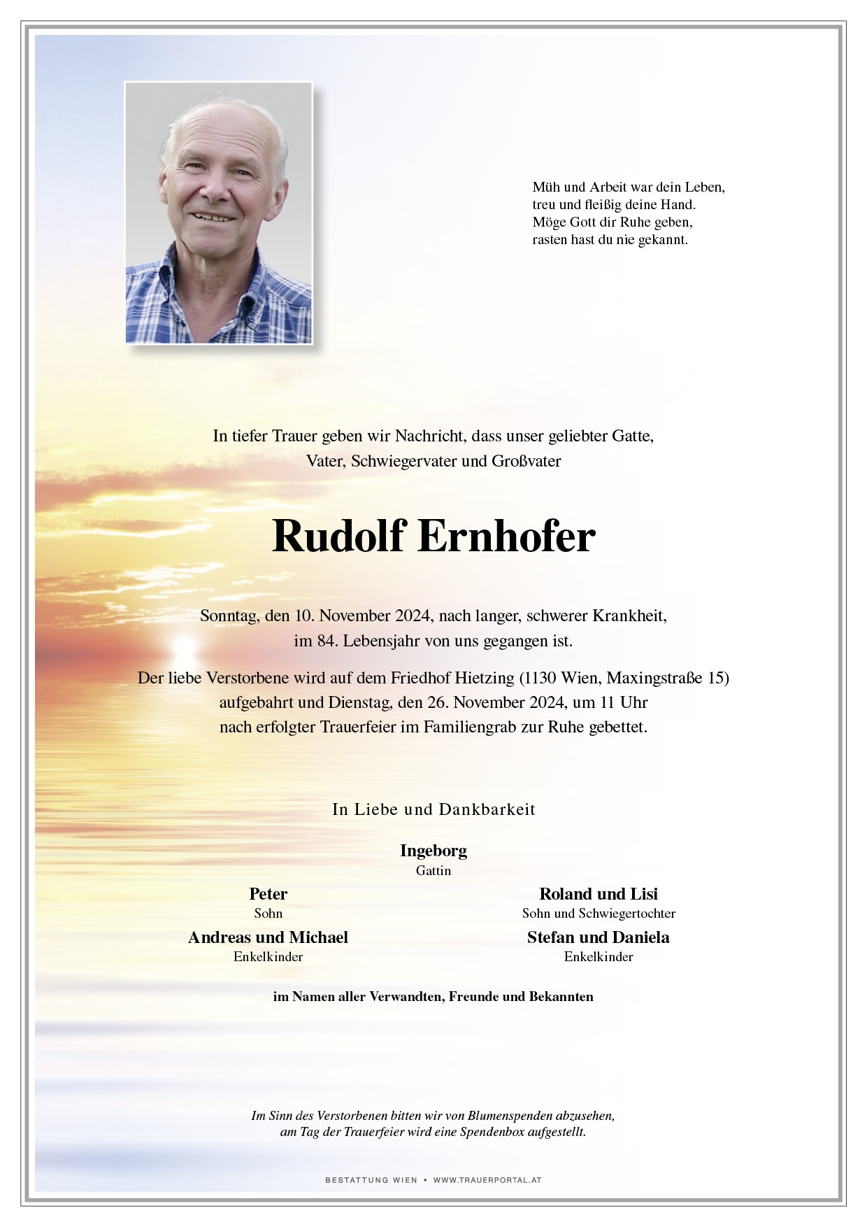 Neue Kerze für Rudolf Ernhofer entzünden.