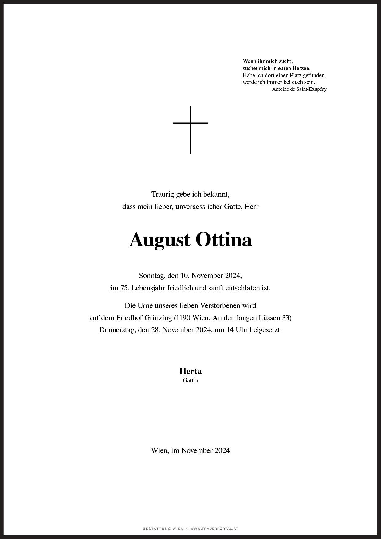 Bestattung wurde durchgeführt von: Bestattung Wien Bestattung Wien GmbH Simmeringer Hauptstraße 339 1110 - Wien (Simmering) Tel.: 01 501950 zum Bestatter