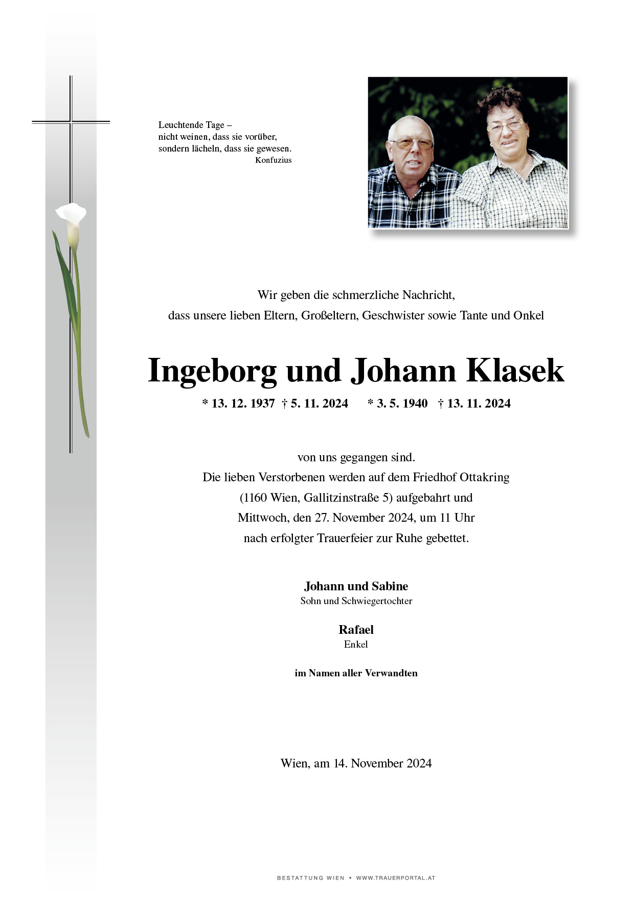 Bestattung wurde durchgeführt von: Bestattung Wien Bestattung Wien GmbH Simmeringer Hauptstraße 339 1110 - Wien (Simmering) Tel.: 01 501950 zum Bestatter