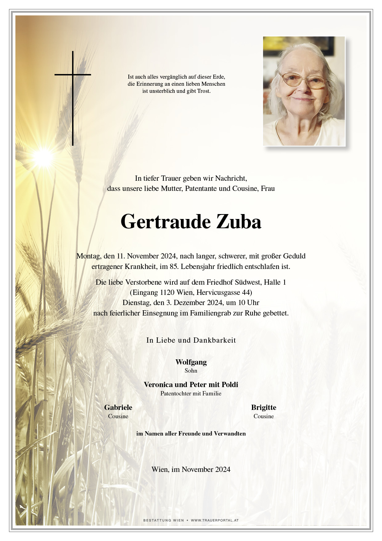Friedhof † 11.11.2024 (84 Jahre)