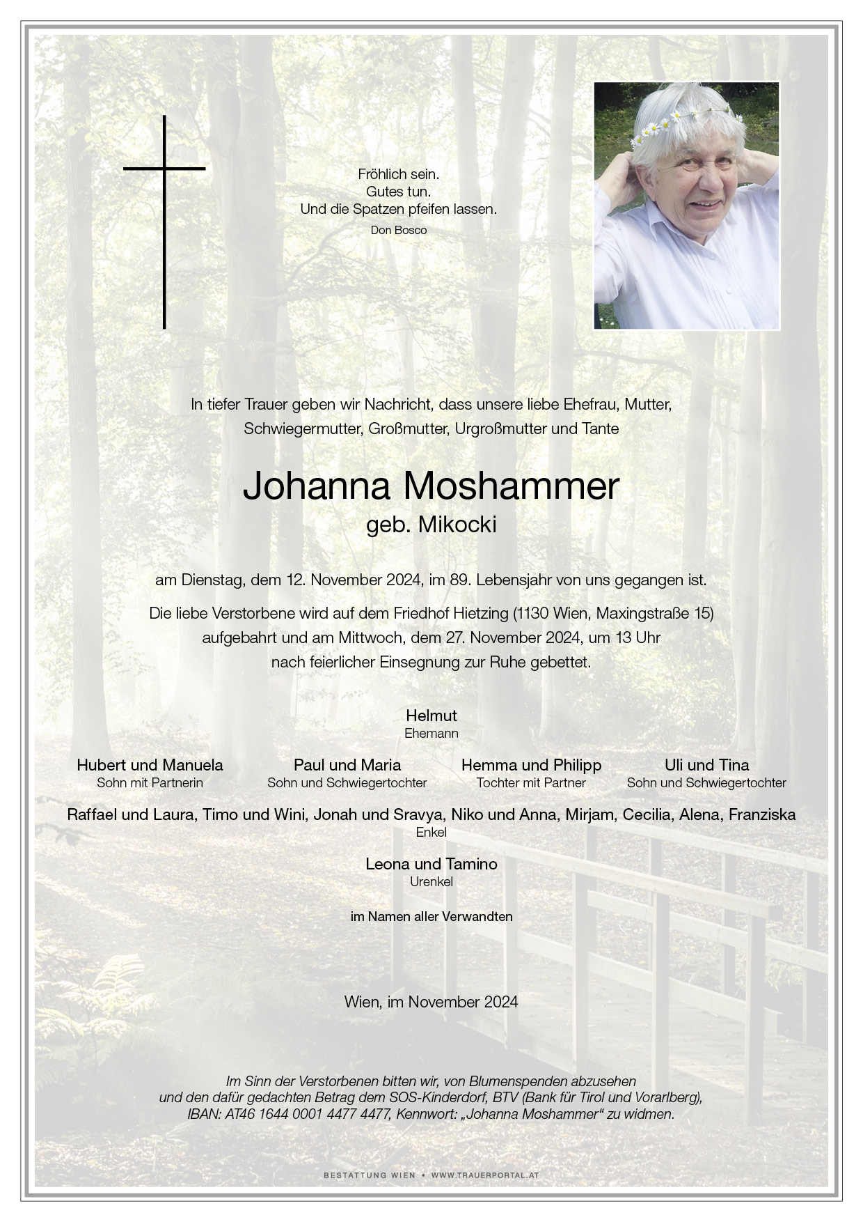 Bestattung wurde durchgeführt von: Bestattung Wien Bestattung Wien GmbH Simmeringer Hauptstraße 339 1110 - Wien (Simmering) Tel.: 01 501950 zum Bestatter