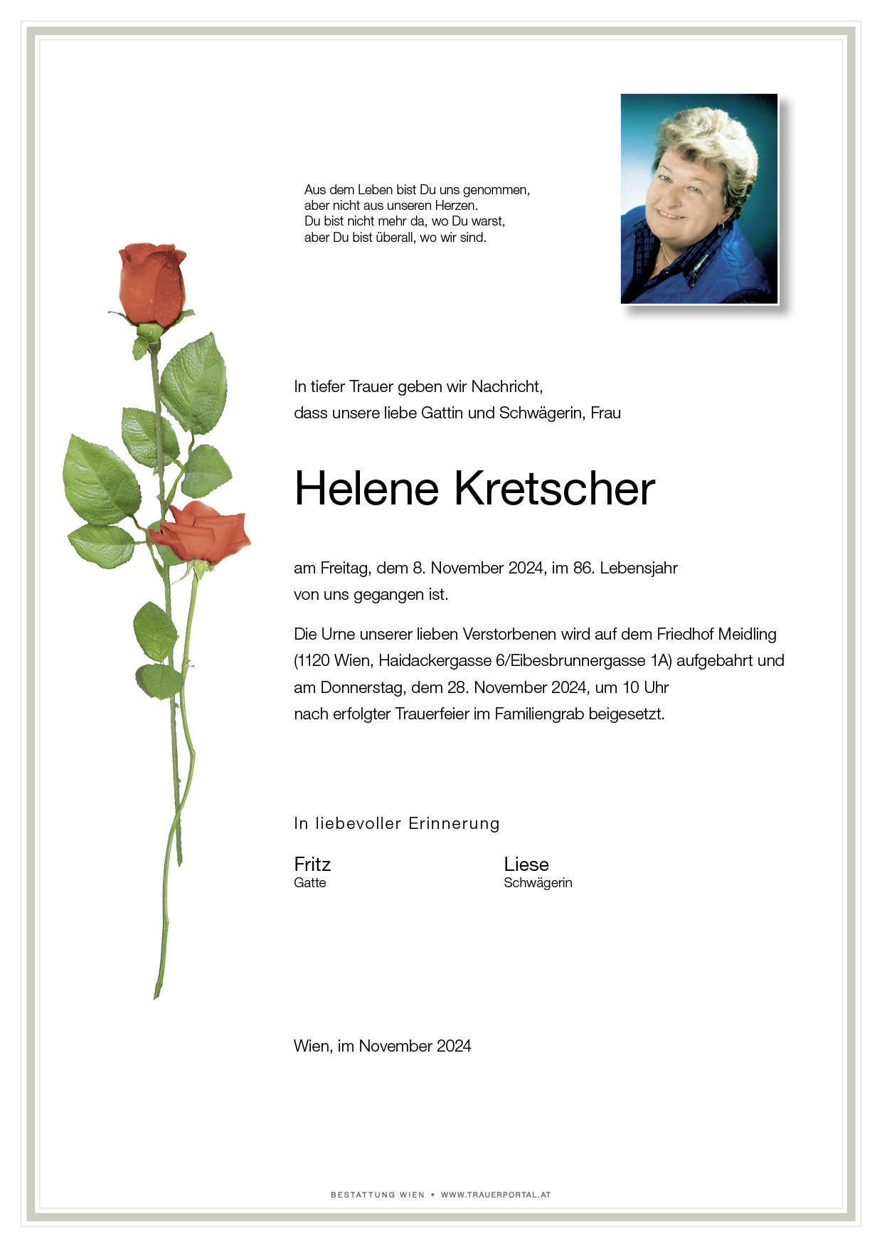 Bestattung wurde durchgeführt von: Bestattung Wien Bestattung Wien GmbH Simmeringer Hauptstraße 339 1110 - Wien (Simmering) Tel.: 01 501950 zum Bestatter