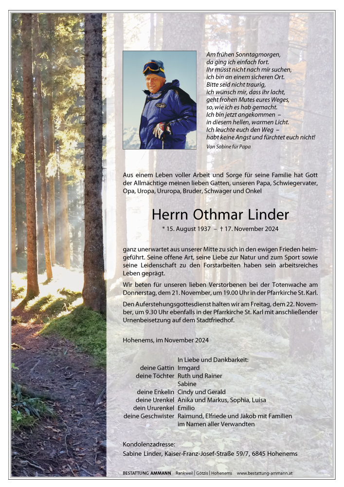 Friedhof Hohenems, Stadtfriedhof, † 17.11.2024 (87 Jahre)