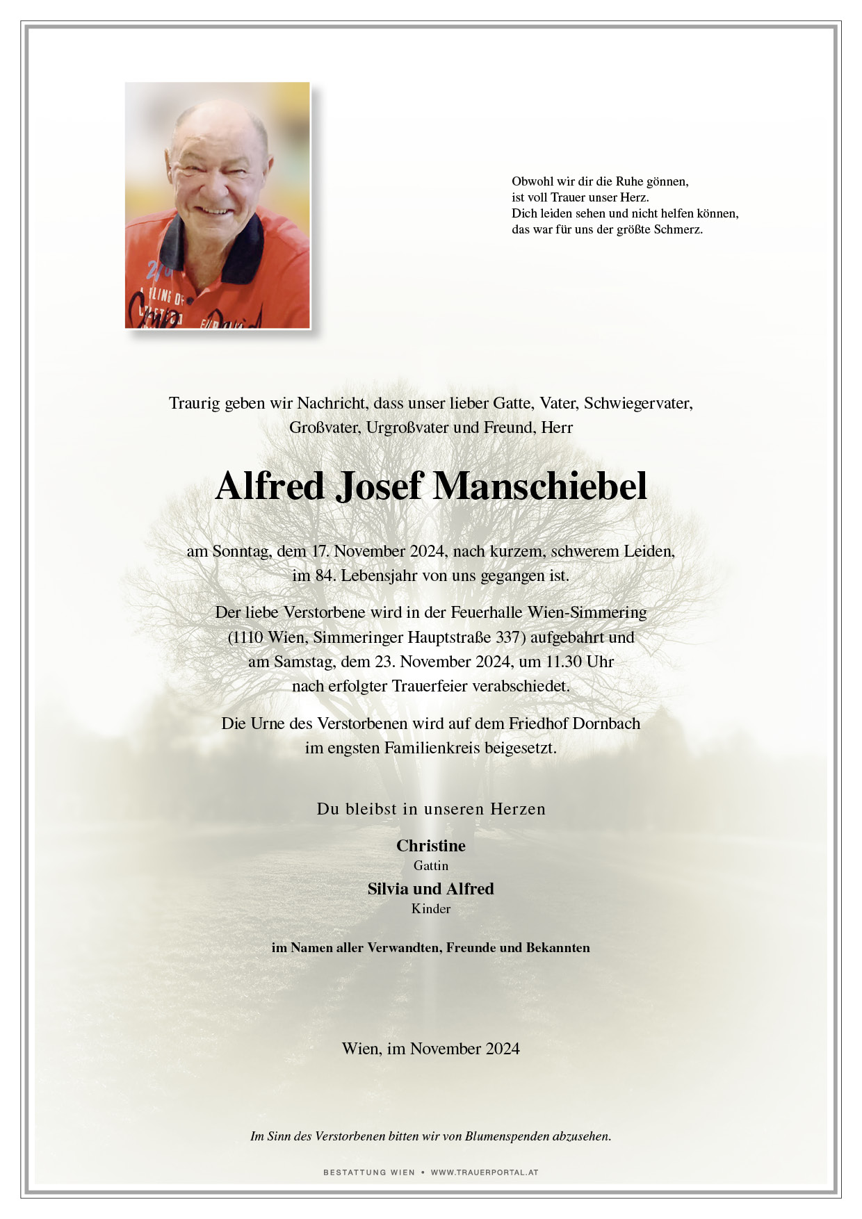 Bestattung wurde durchgeführt von: Bestattung Wien Bestattung Wien GmbH Simmeringer Hauptstraße 339 1110 - Wien (Simmering) Tel.: 01 501950 zum Bestatter