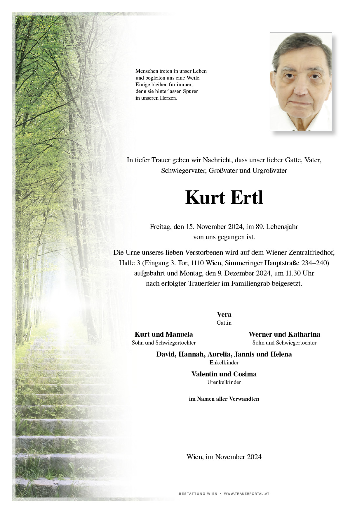 Bestattung wurde durchgeführt von: Bestattung Wien Bestattung Wien GmbH Simmeringer Hauptstraße 339 1110 - Wien (Simmering) Tel.: 01 501950 zum Bestatter