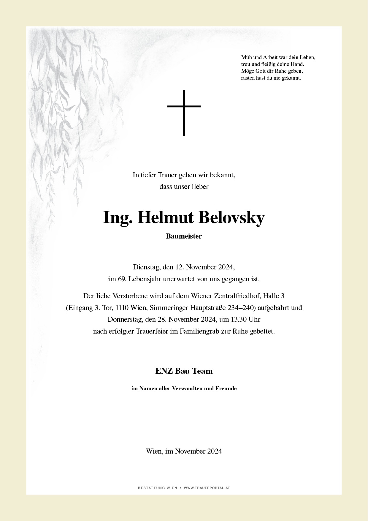 Bestattung wurde durchgeführt von: Bestattung Wien Bestattung Wien GmbH Simmeringer Hauptstraße 339 1110 - Wien (Simmering) Tel.: 01 501950 zum Bestatter