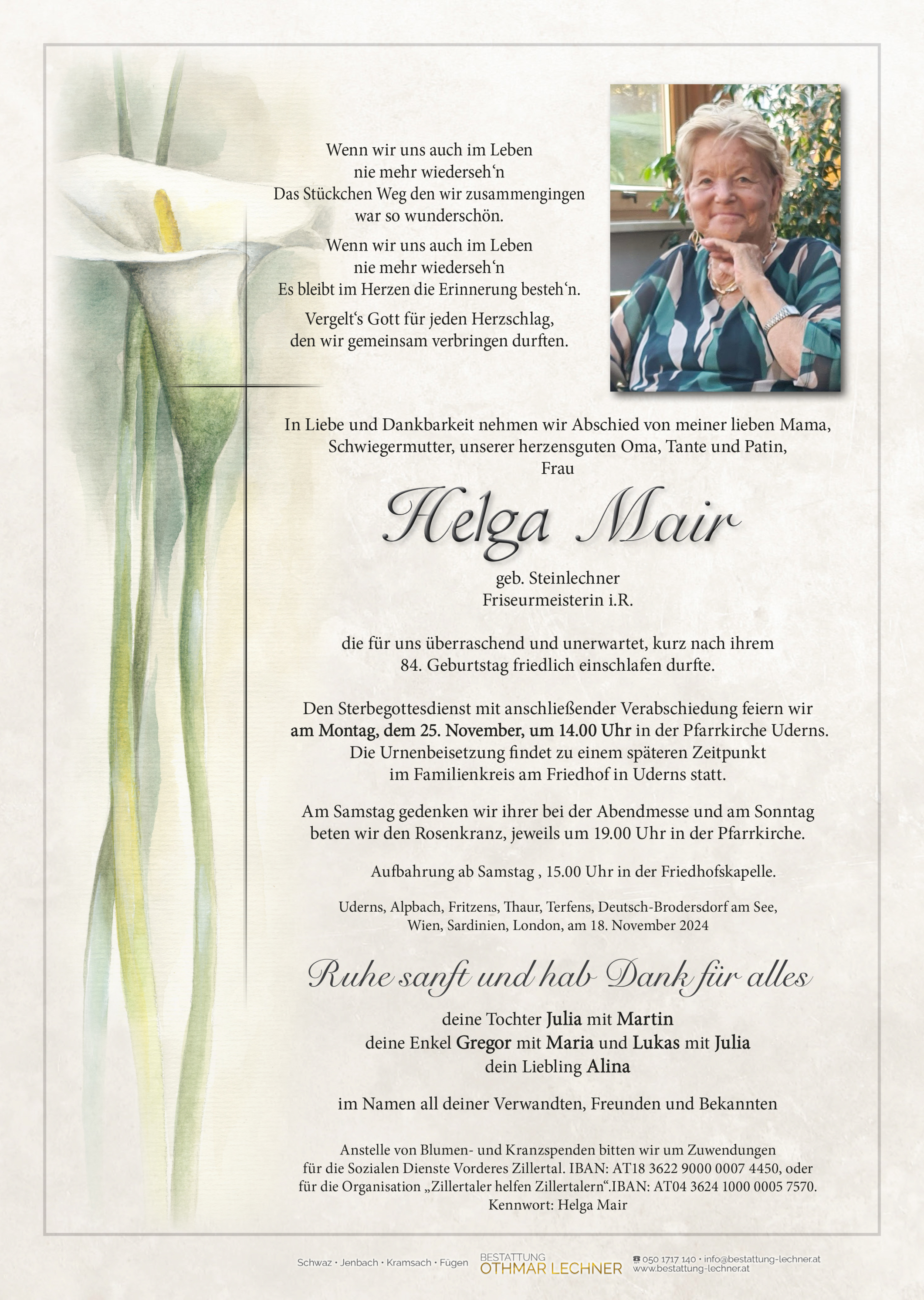 Friedhof Uderns, † 18.11.2024 (84 Jahre)