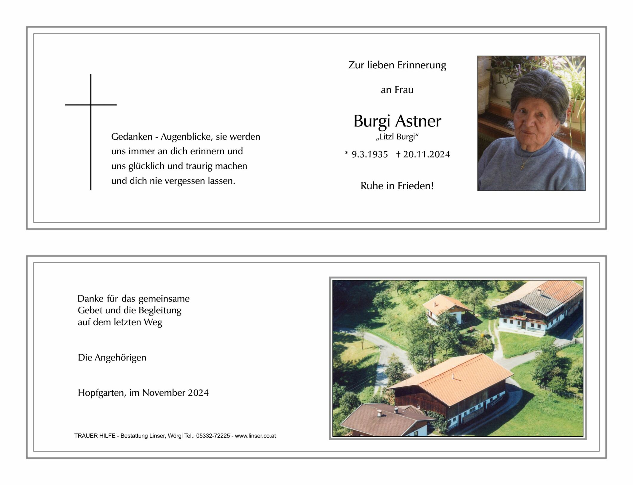 Bestattung wurde durchgeführt von: Walter Linser TrauerHilfe Bestattung Linser GmbH Wildschönauerstraße 41 6300 - Wörgl Tel.: 05332 72225 zum Bestatter