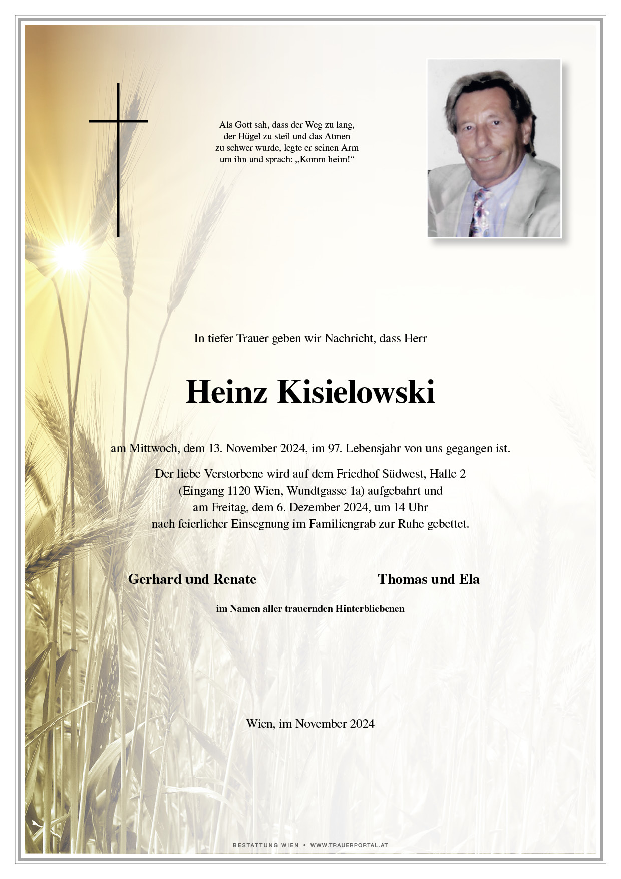 Neue Kerze für Heinrich Kisielowski entzünden.