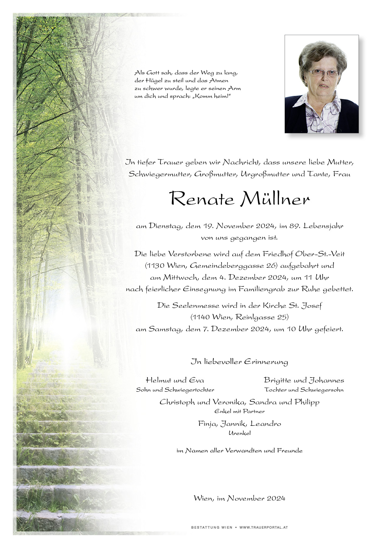 Bestattung wurde durchgeführt von: Bestattung Wien Bestattung Wien GmbH Simmeringer Hauptstraße 339 1110 - Wien (Simmering) Tel.: 01 501950 zum Bestatter