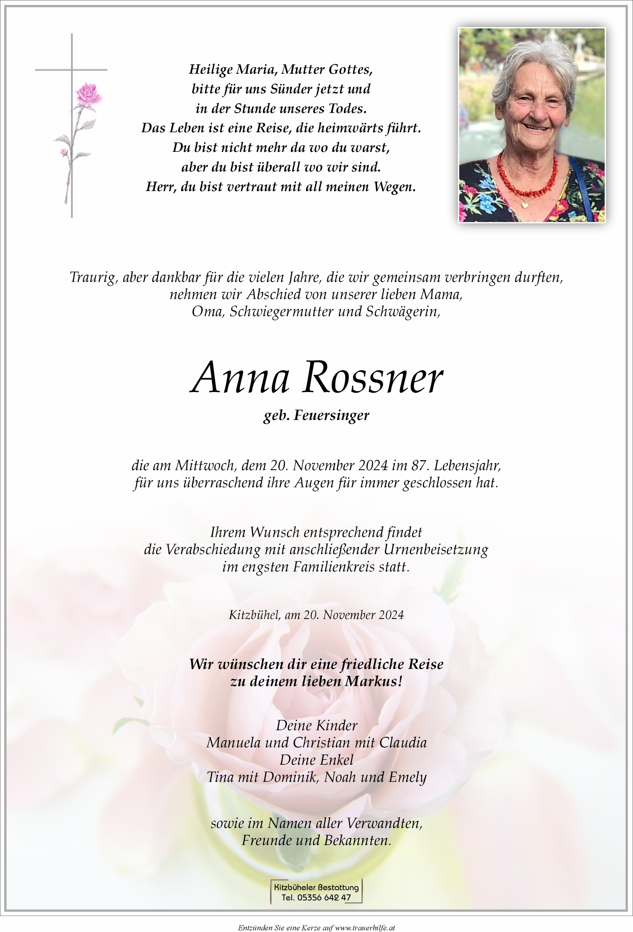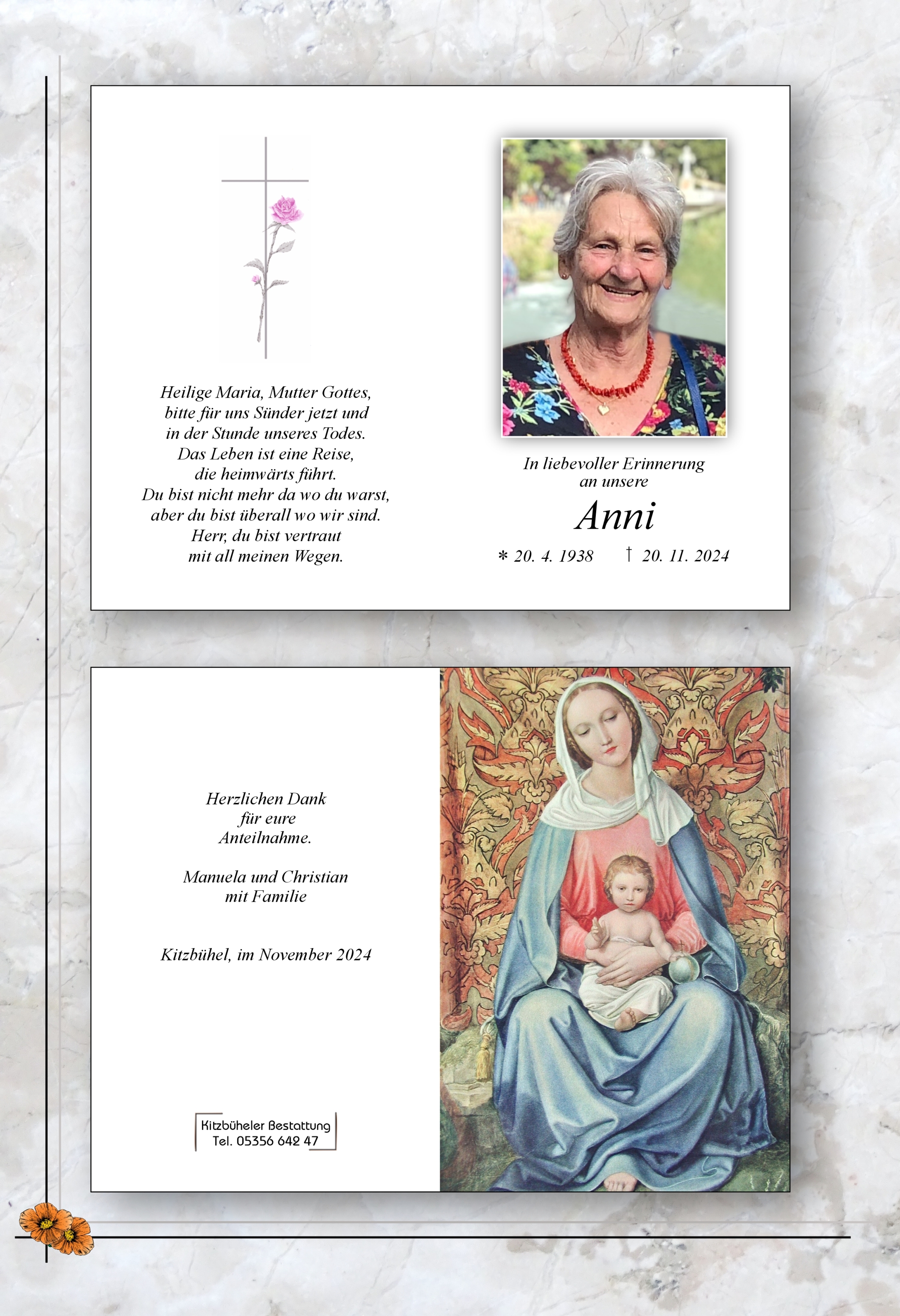 Wir haben Anna sehr gerne gehabt und sie war stolz auf euch alle.