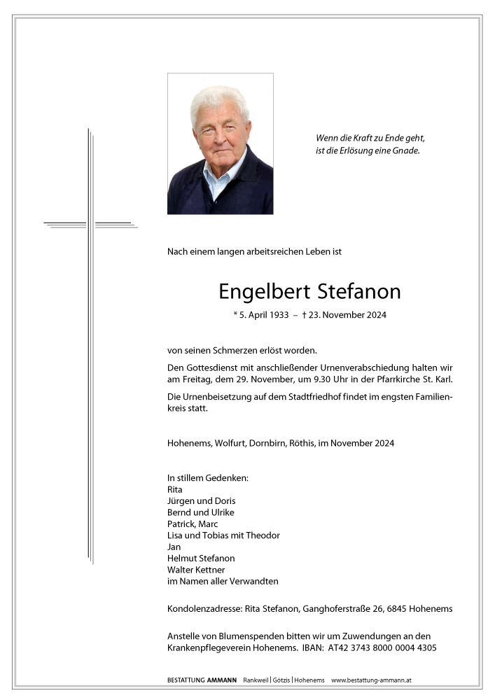 Friedhof Hohenems, Stadtfriedhof, † 23.11.2024 (91 Jahre)