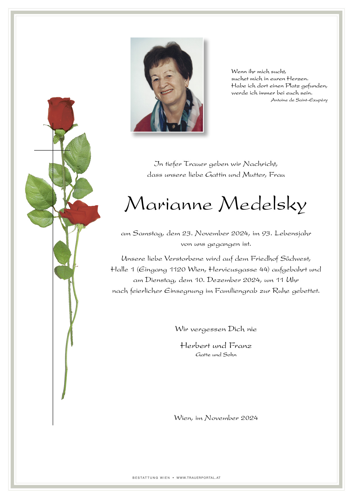 Bestattung wurde durchgeführt von: Bestattung Wien Bestattung Wien GmbH Simmeringer Hauptstraße 339 1110 - Wien (Simmering) Tel.: 01 501950 zum Bestatter