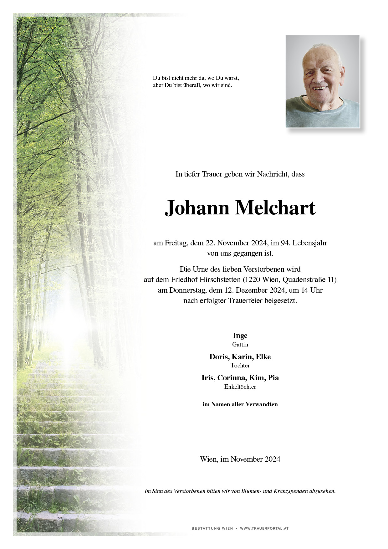 Bestattung wurde durchgeführt von: Bestattung Wien Bestattung Wien GmbH Simmeringer Hauptstraße 339 1110 - Wien (Simmering) Tel.: 01 501950 zum Bestatter