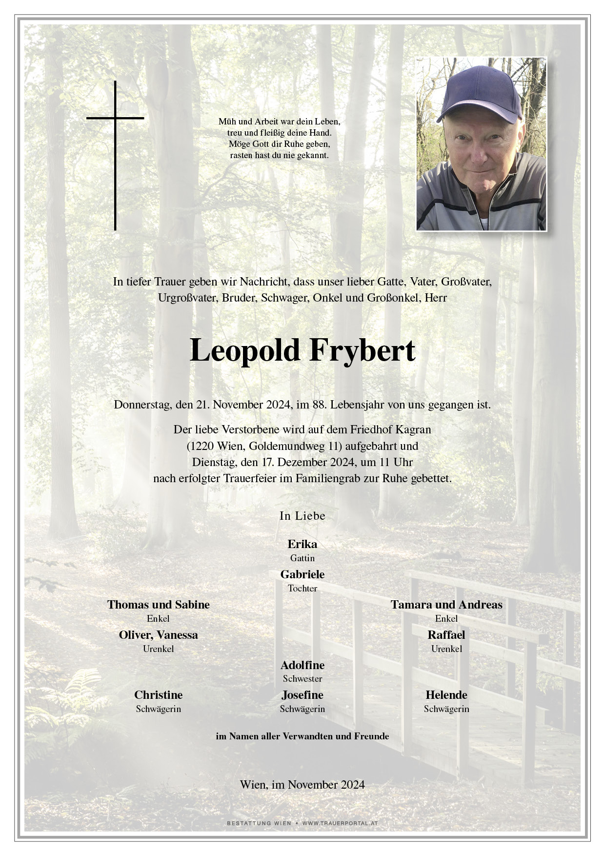 Bestattung wurde durchgeführt von: Bestattung Wien Bestattung Wien GmbH Simmeringer Hauptstraße 339 1110 - Wien (Simmering) Tel.: 01 501950 zum Bestatter