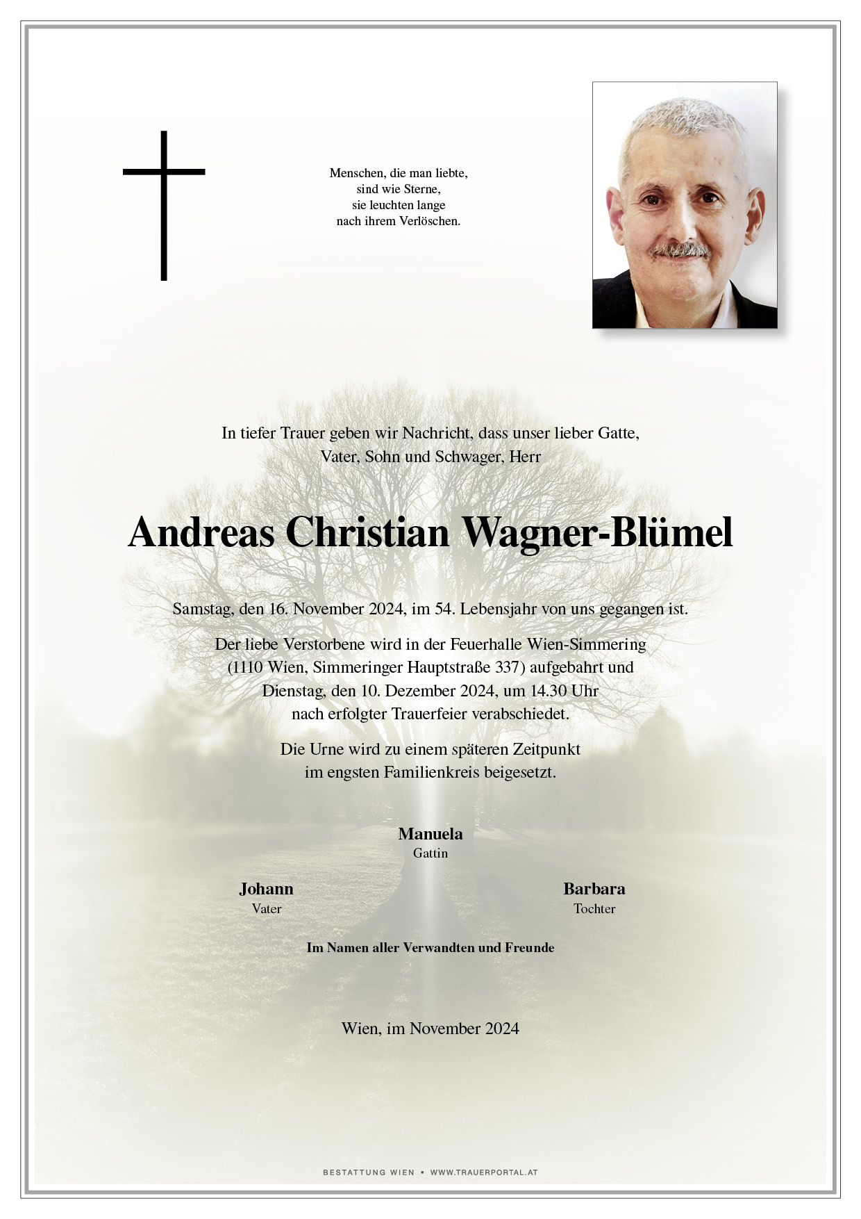 Neue Kerze für Andreas Christian Wagner-Blümel entzünden.