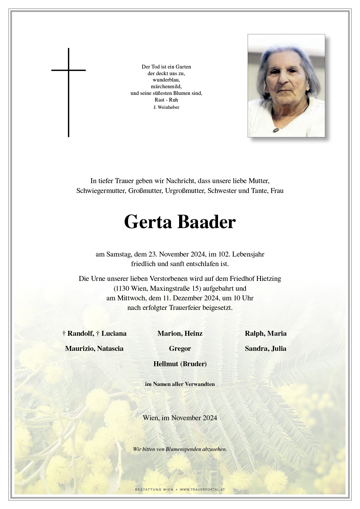 Bestattung wurde durchgeführt von: Bestattung Wien Bestattung Wien GmbH Simmeringer Hauptstraße 339 1110 - Wien (Simmering) Tel.: 01 501950 zum Bestatter