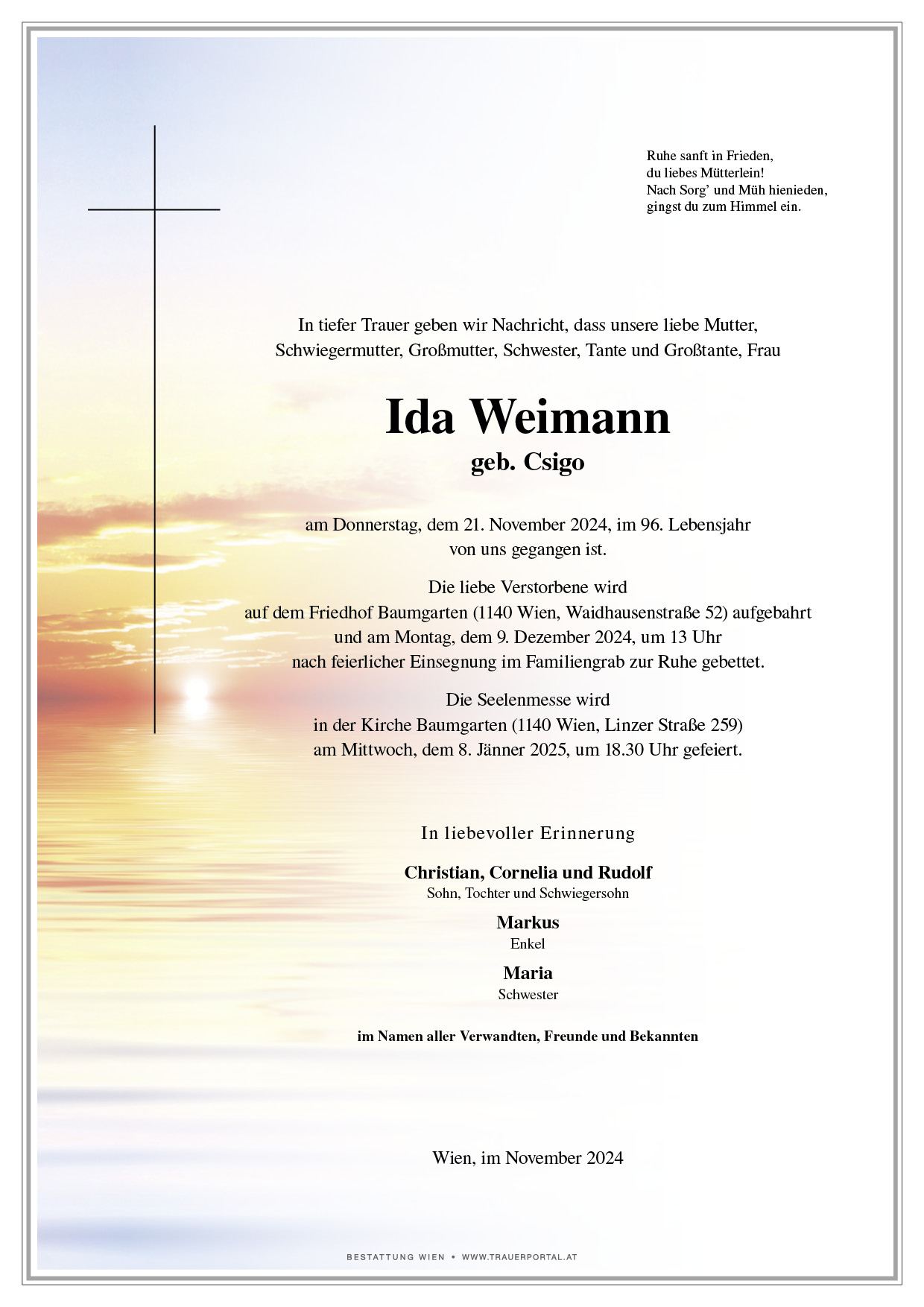 Bestattung wurde durchgeführt von: Bestattung Wien Bestattung Wien GmbH Simmeringer Hauptstraße 339 1110 - Wien (Simmering) Tel.: 01 501950 zum Bestatter