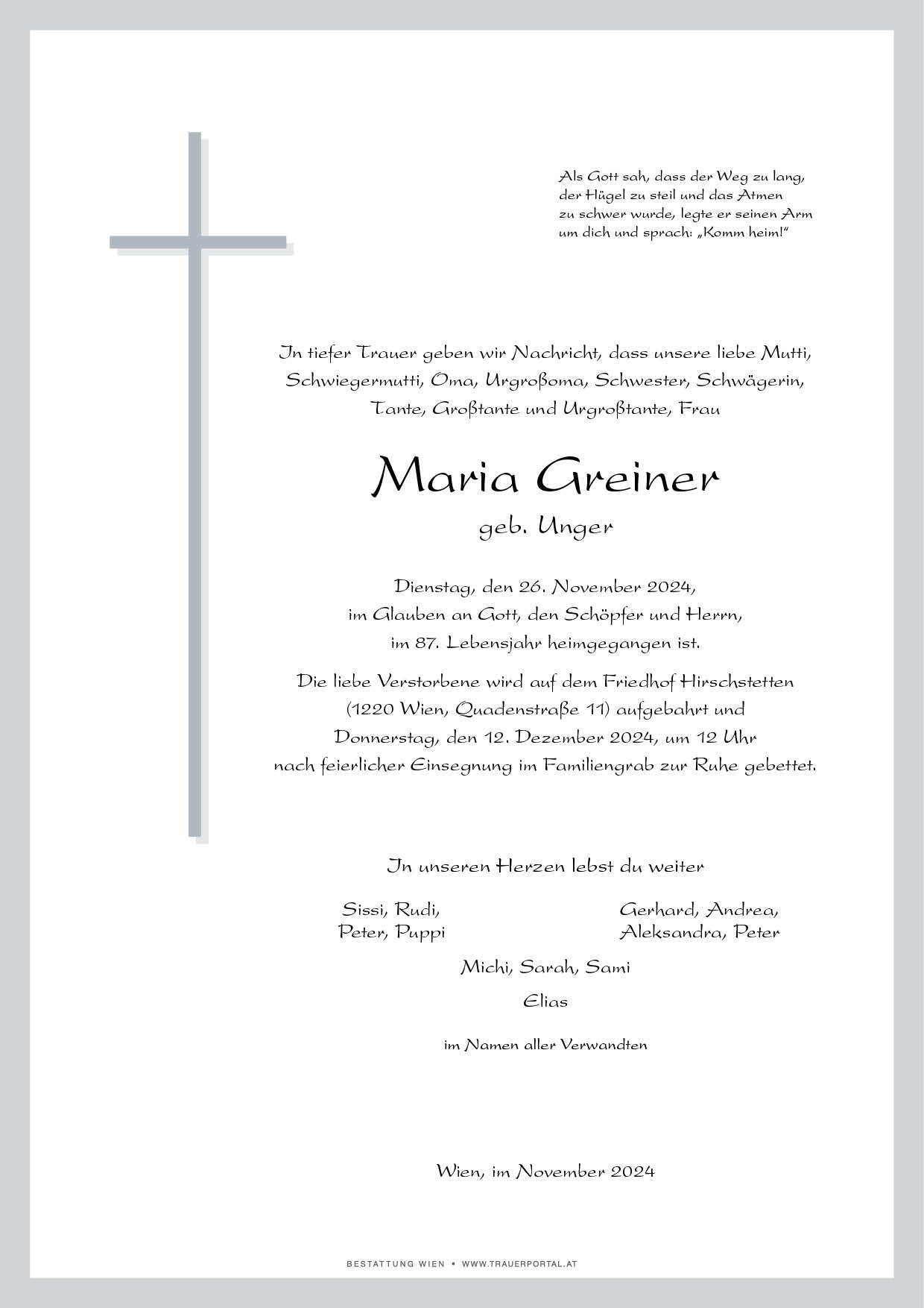 Bestattung wurde durchgeführt von: Bestattung Wien Bestattung Wien GmbH Simmeringer Hauptstraße 339 1110 - Wien (Simmering) Tel.: 01 501950 zum Bestatter