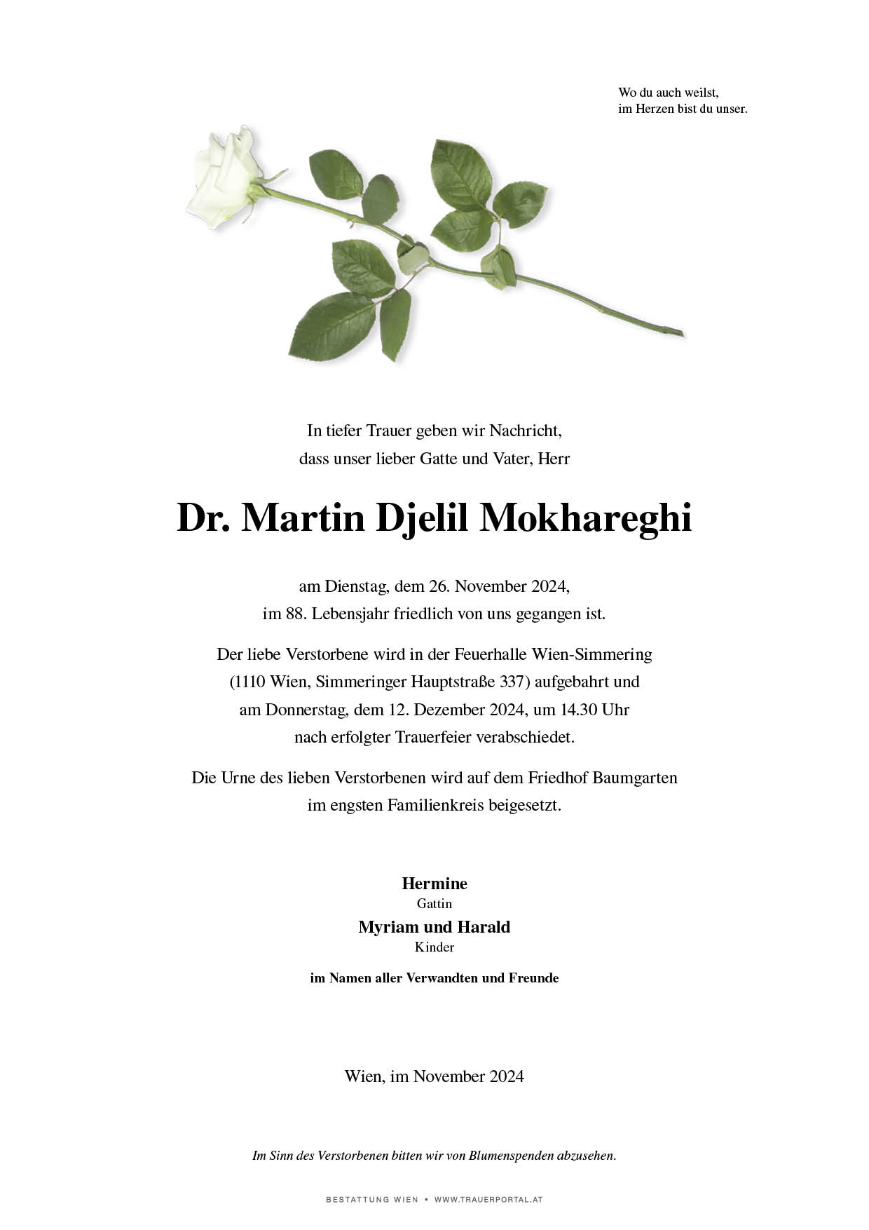 Bestattung wurde durchgeführt von: Bestattung Wien Bestattung Wien GmbH Simmeringer Hauptstraße 339 1110 - Wien (Simmering) Tel.: 01 501950 zum Bestatter
