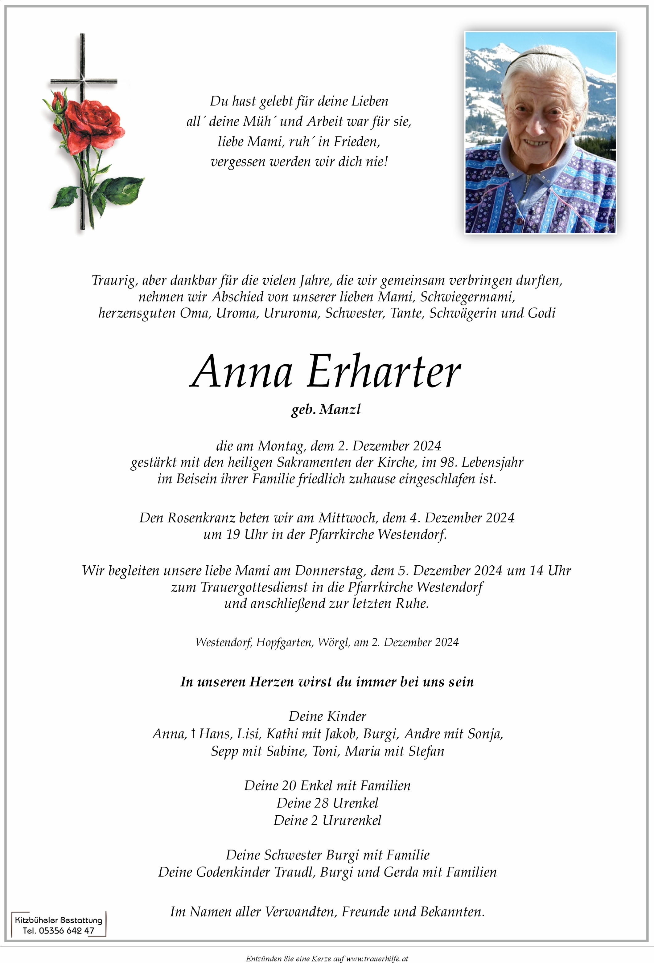Bestattung wurde durchgeführt von: Kitzbüheler Bestattung Kitzbüheler Bestattung Kitzbüheler Bestattung WV GmbH Jochberger Straße 62 6370 - Kitzbühel Tel.: 05356 642 47 Tel.: 050 1717 180 zum Bestatter